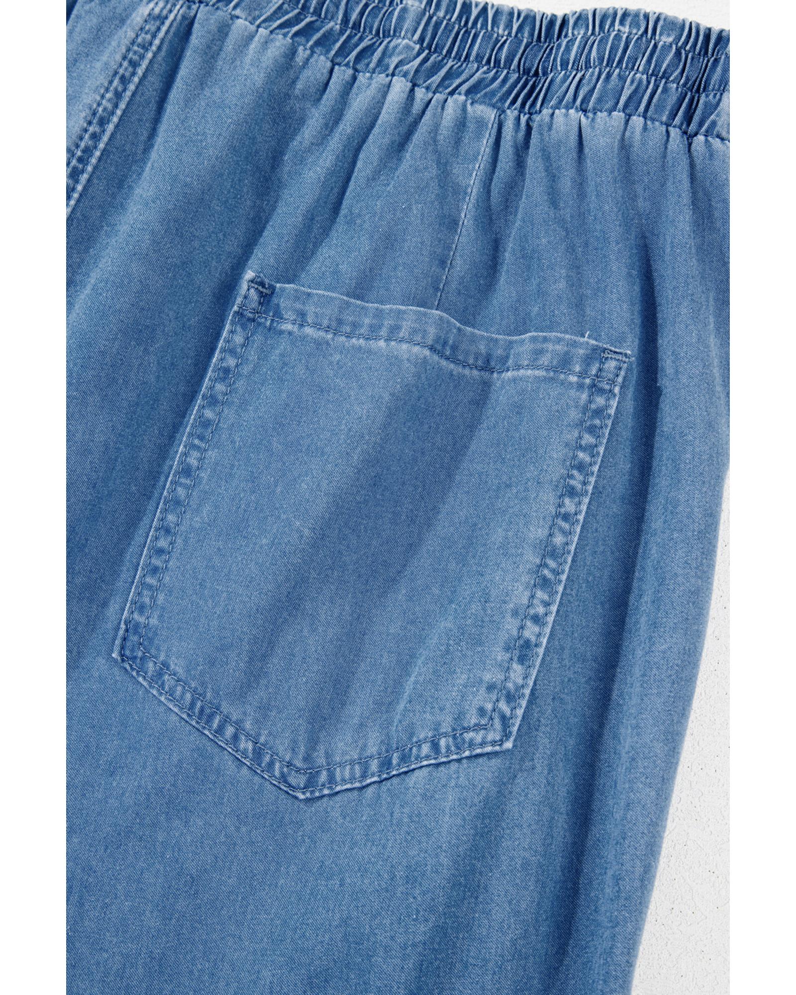 Dusk Blue Drawstring Waist Pocketed Plus Size Denim Joggers - 1X