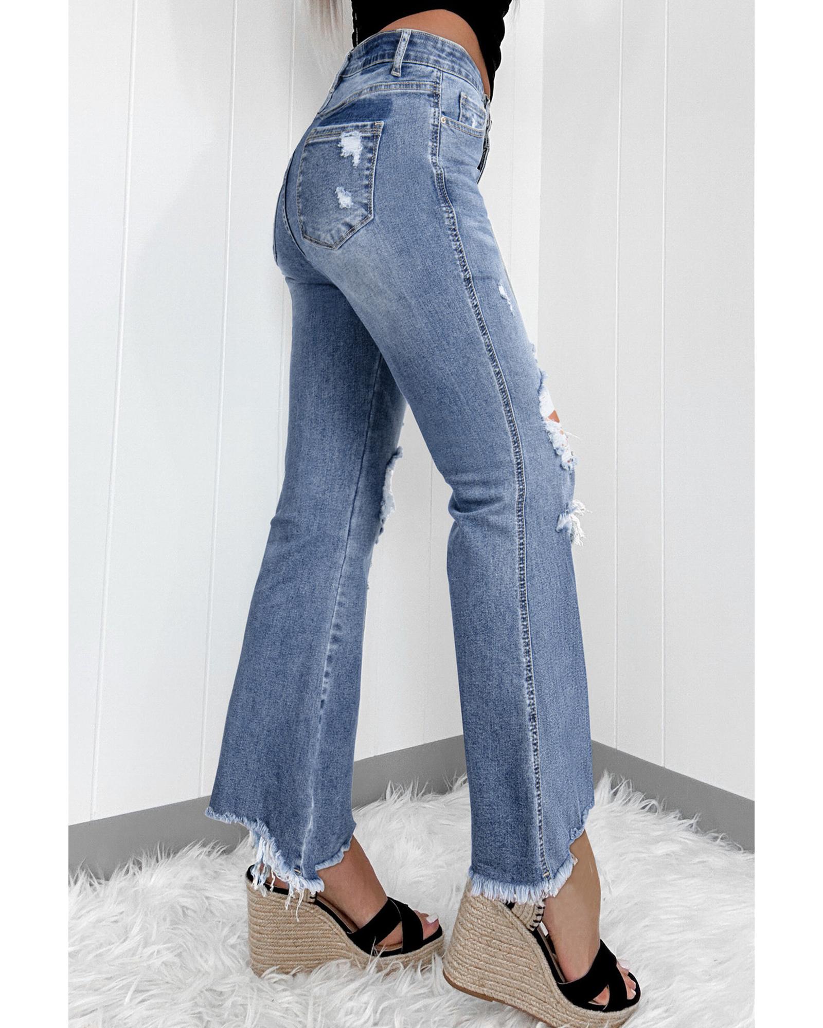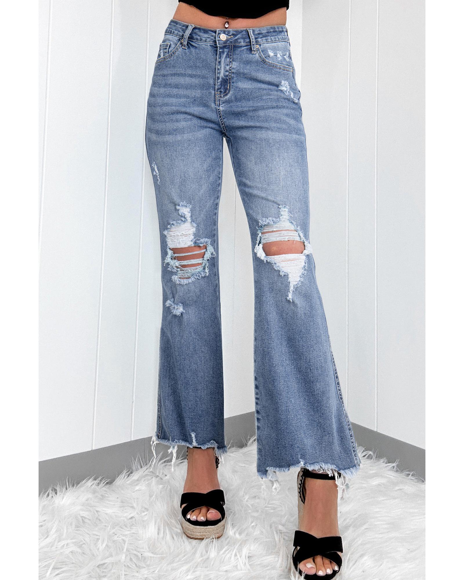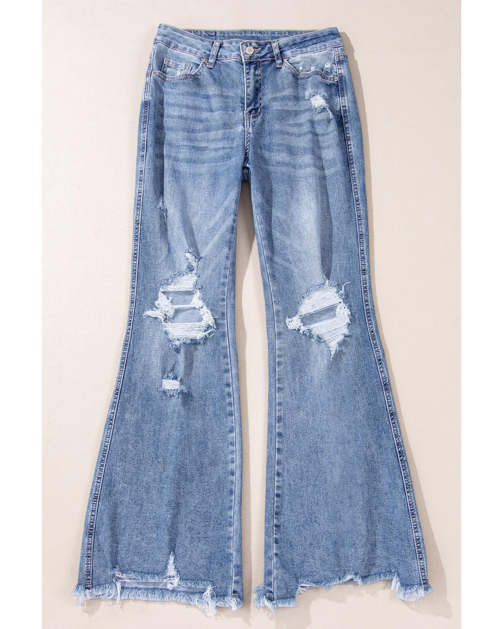 Dusk Blue High Rise Ripped Distressed Hem Flared Jeans – 8 US