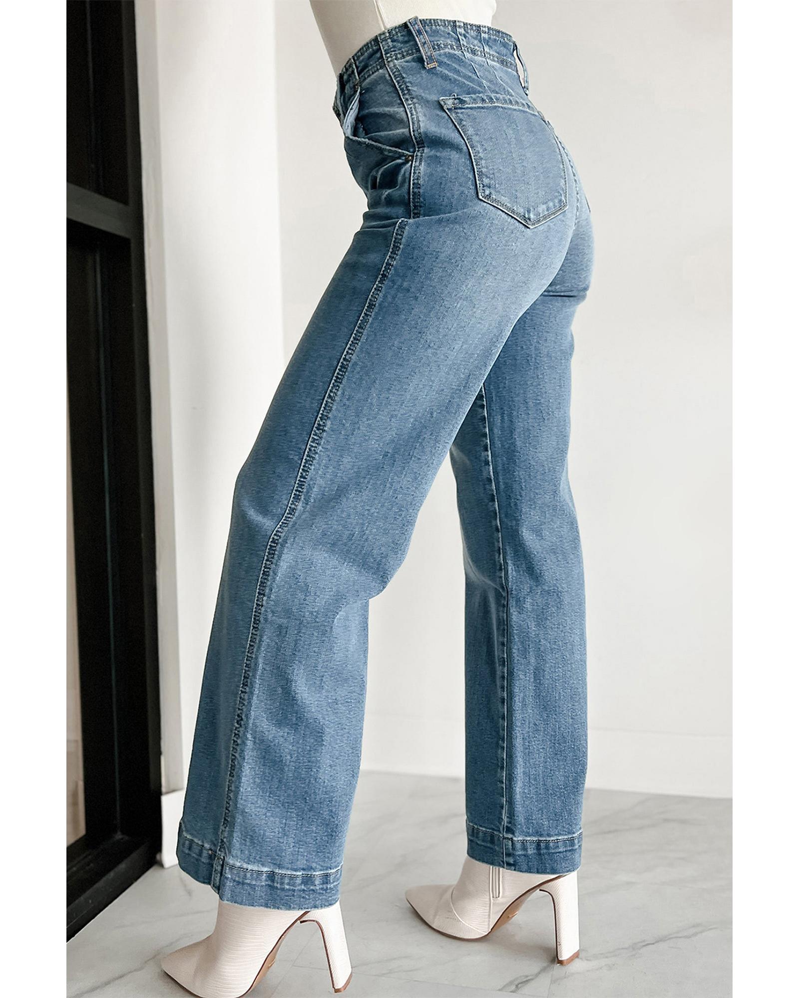 Dusk Blue Multi Buttons Medium Wash Straight Loose Leg Jeans – 14 US