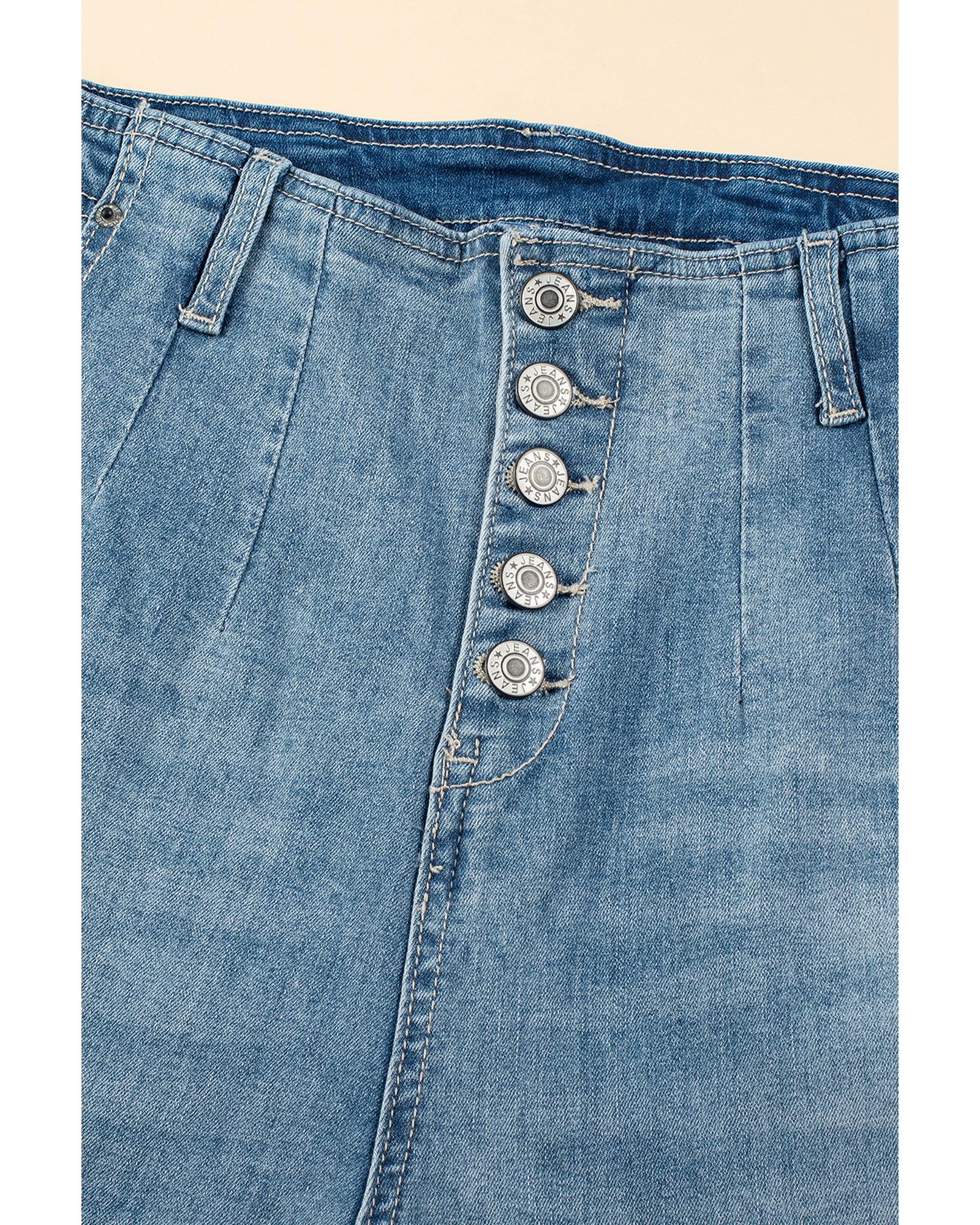 Dusk Blue Multi Buttons Medium Wash Straight Loose Leg Jeans – 8 US