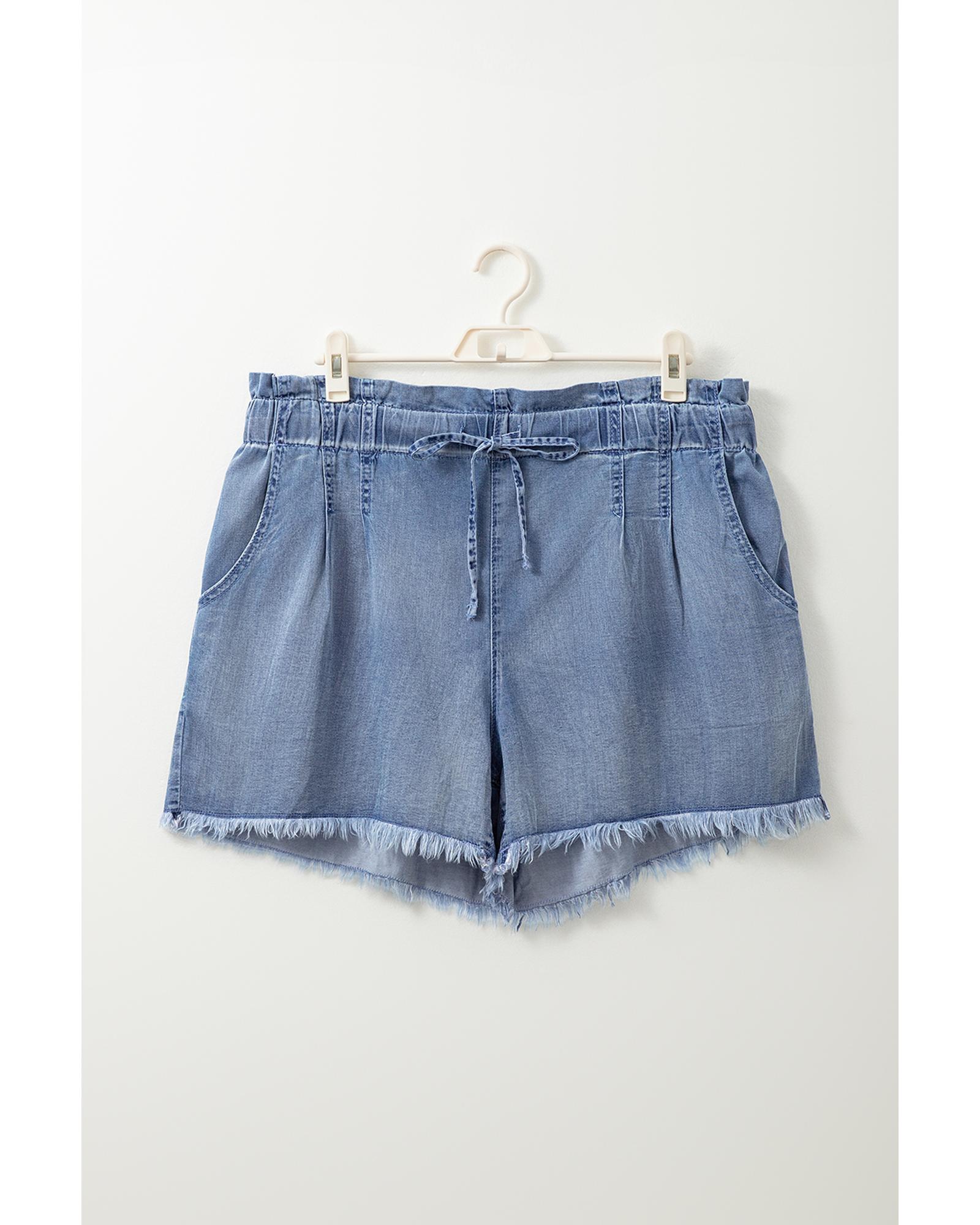 Dusk Blue Raw Hem Lace-up High Waist Plus Size Denim Shorts – 3X