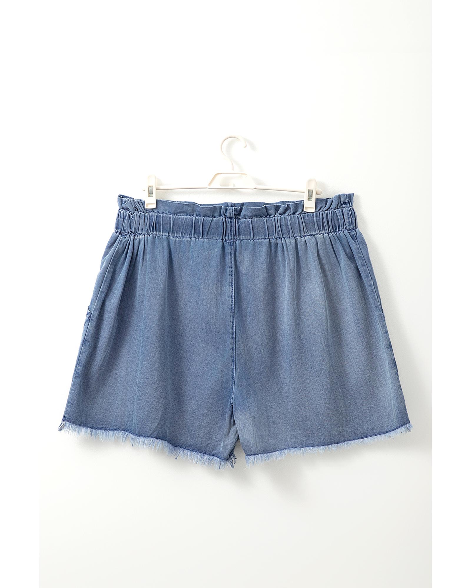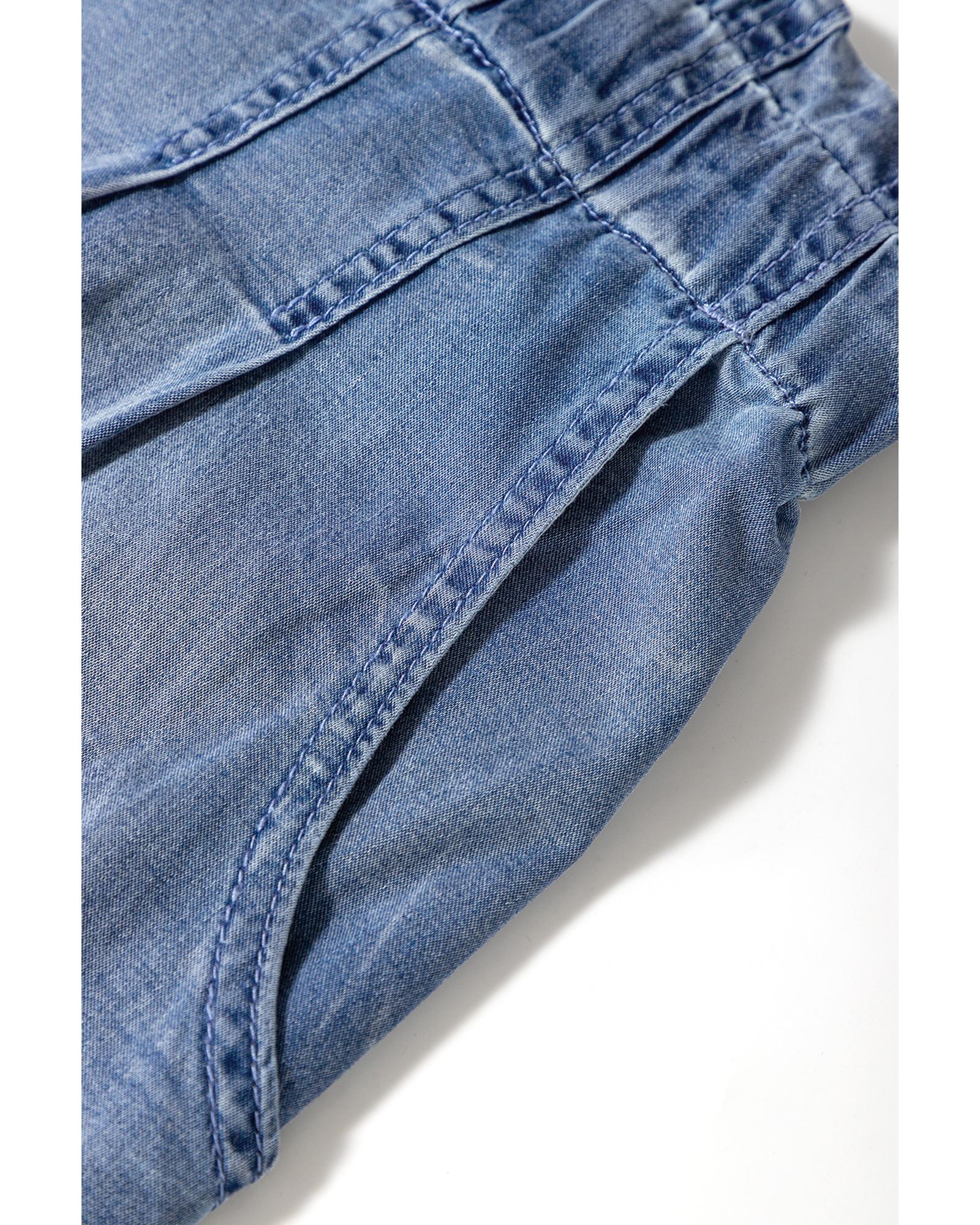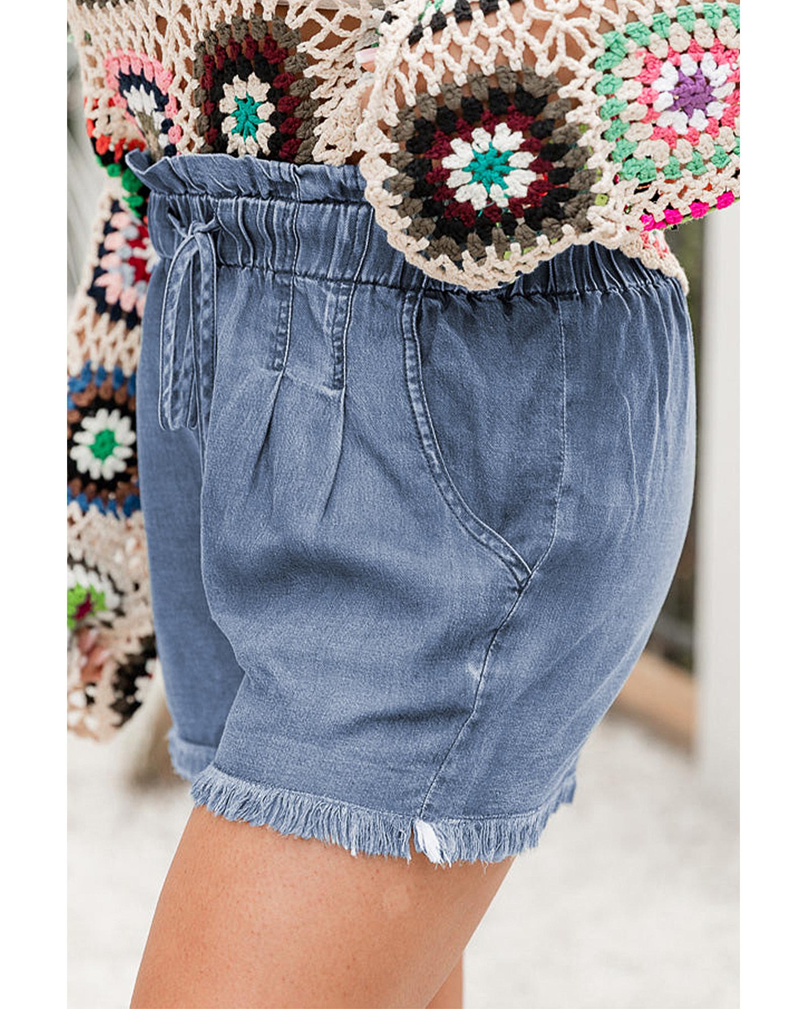 Dusk Blue Raw Hem Lace-up High Waist Plus Size Denim Shorts – 4X