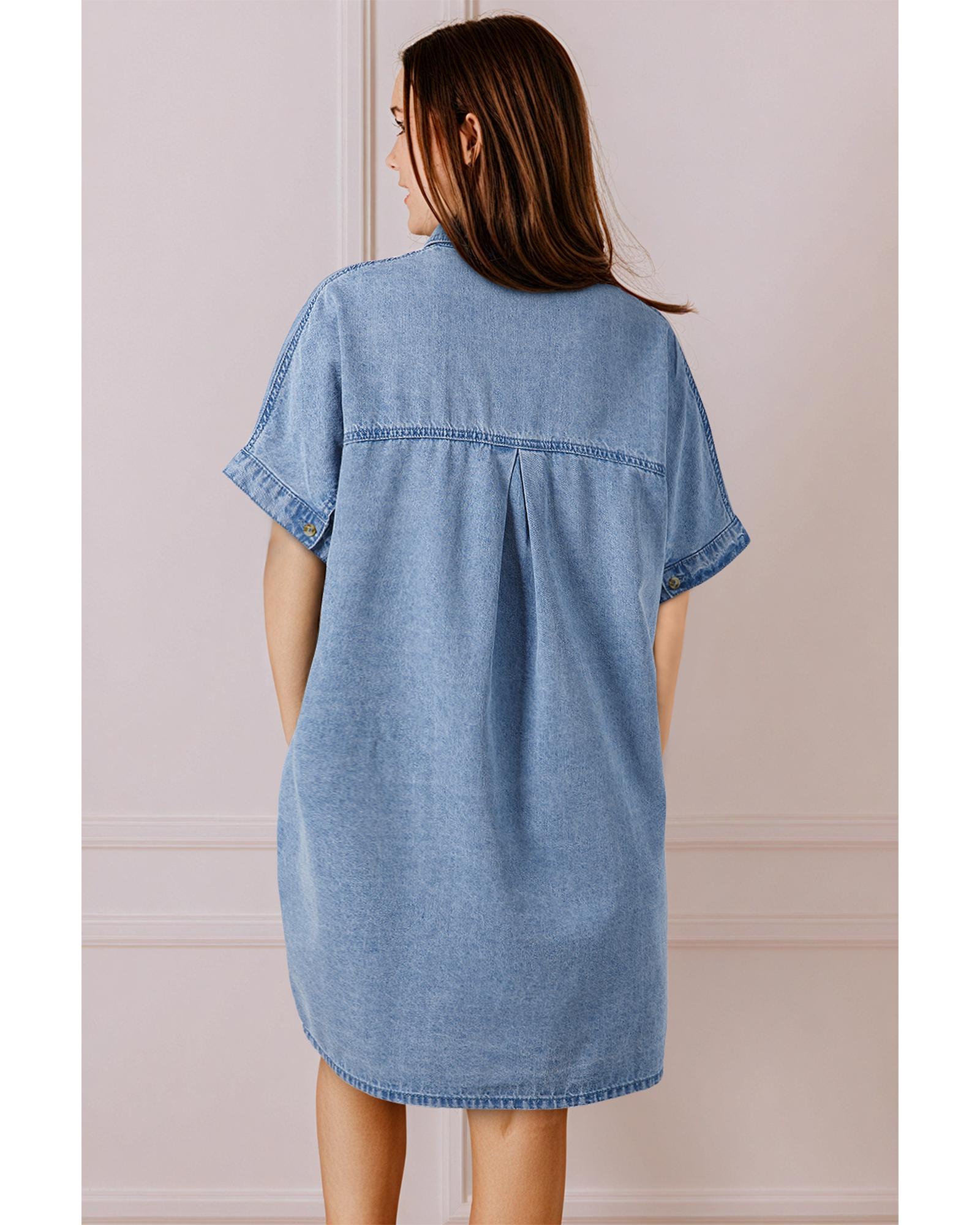 Dusk Blue Short Sleeve Pocketed Button up Denim Tunic Dress – S