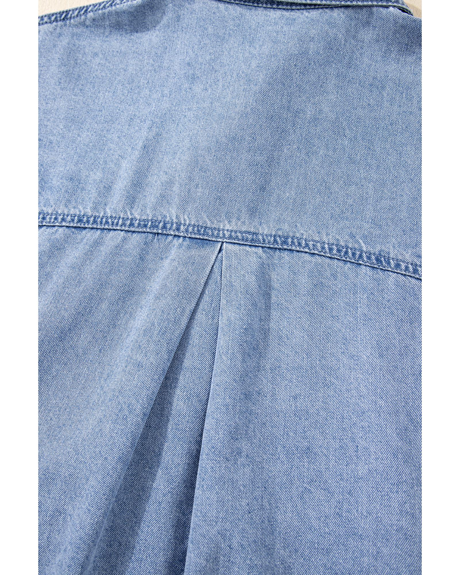 Dusk Blue Short Sleeve Pocketed Button up Denim Tunic Dress - XL