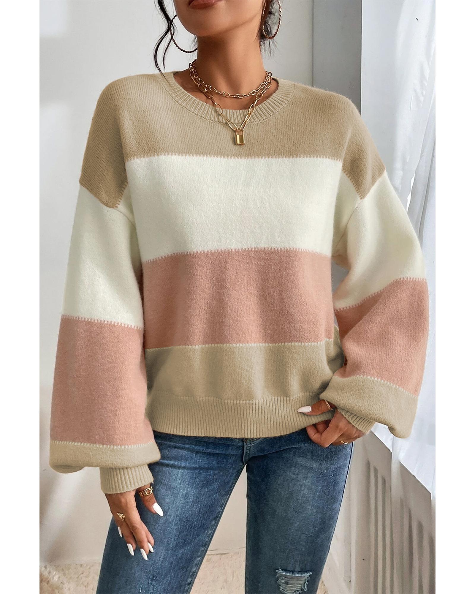 Dusty Pink Color Block Lantern Sleeve Drop Shoulder Sweater – XL
