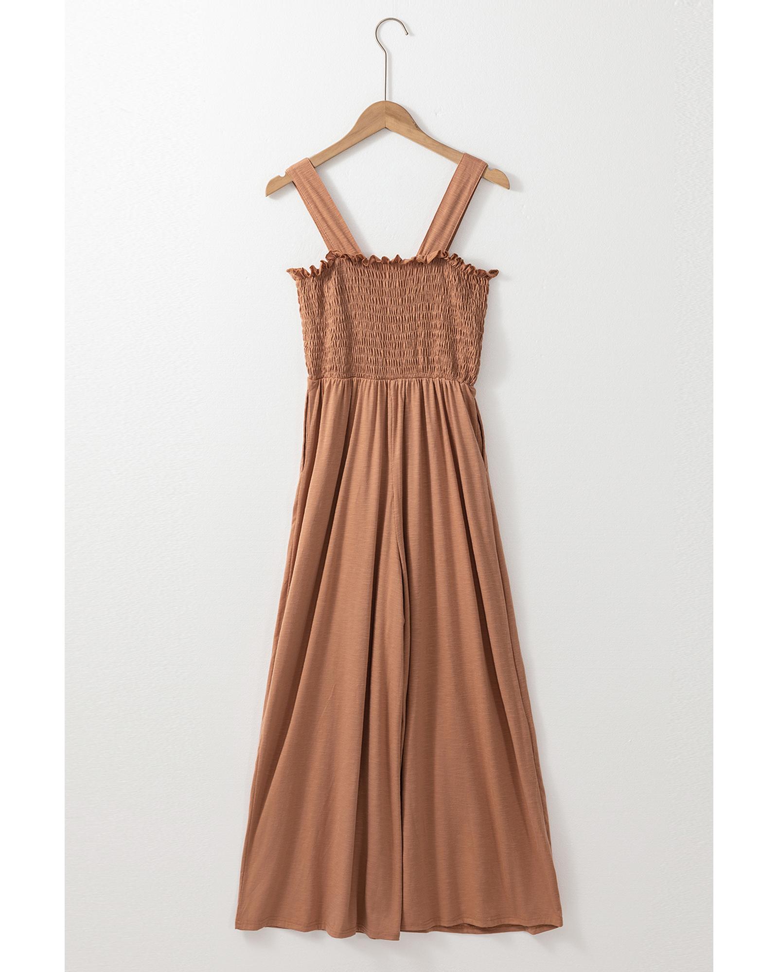 - Dusty Pink Ruffled Shirred Wide Leg Sleeveless Jumpsuit