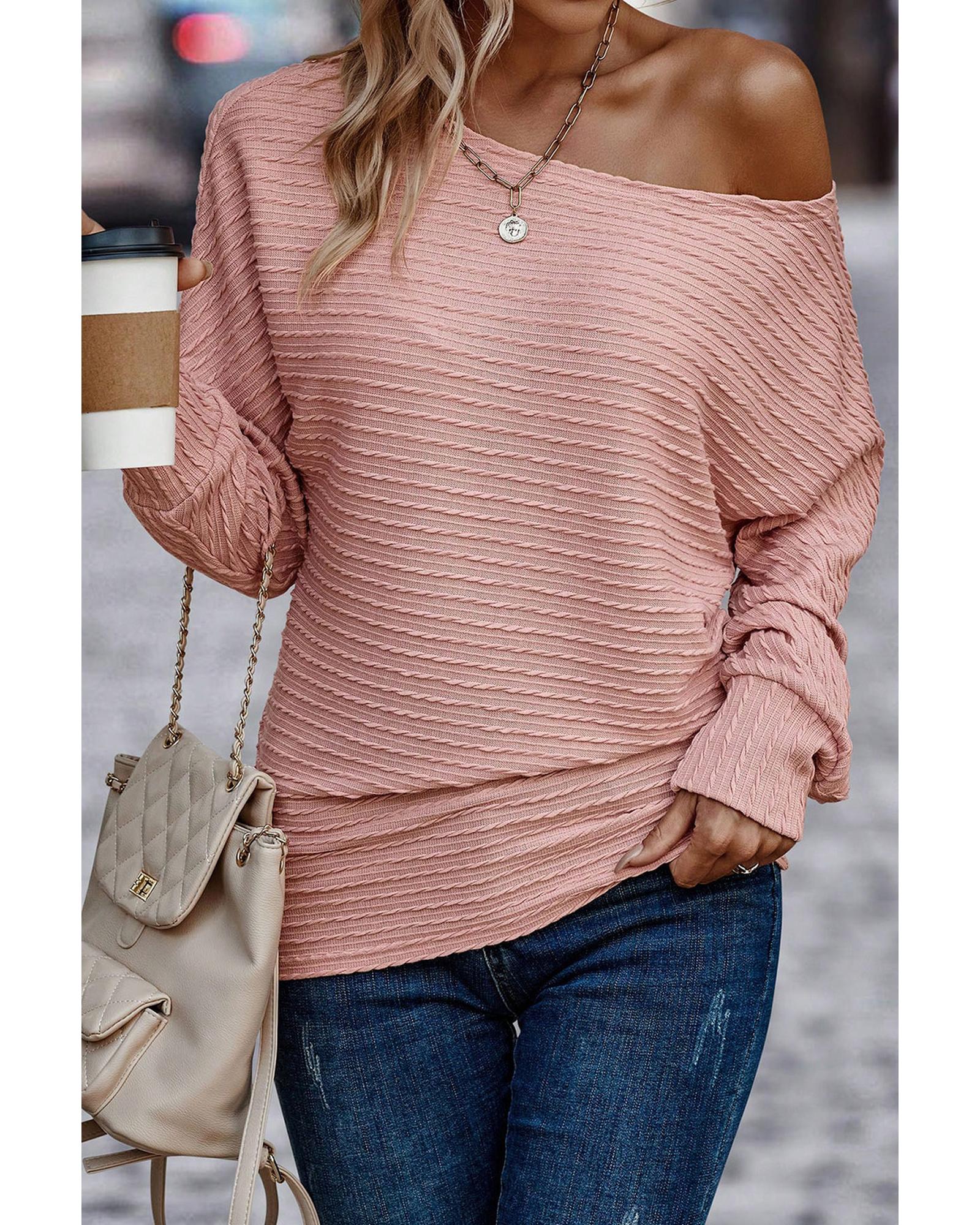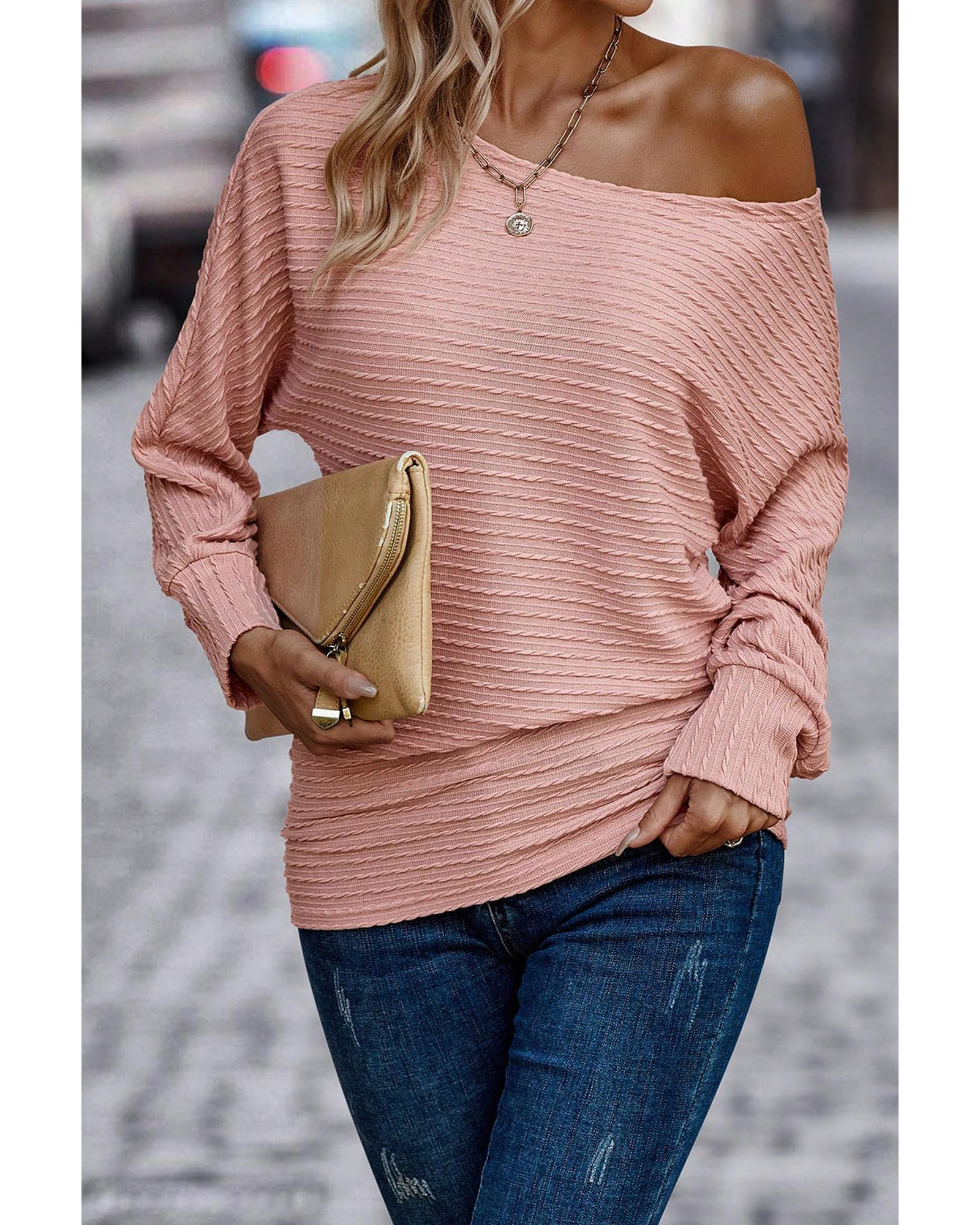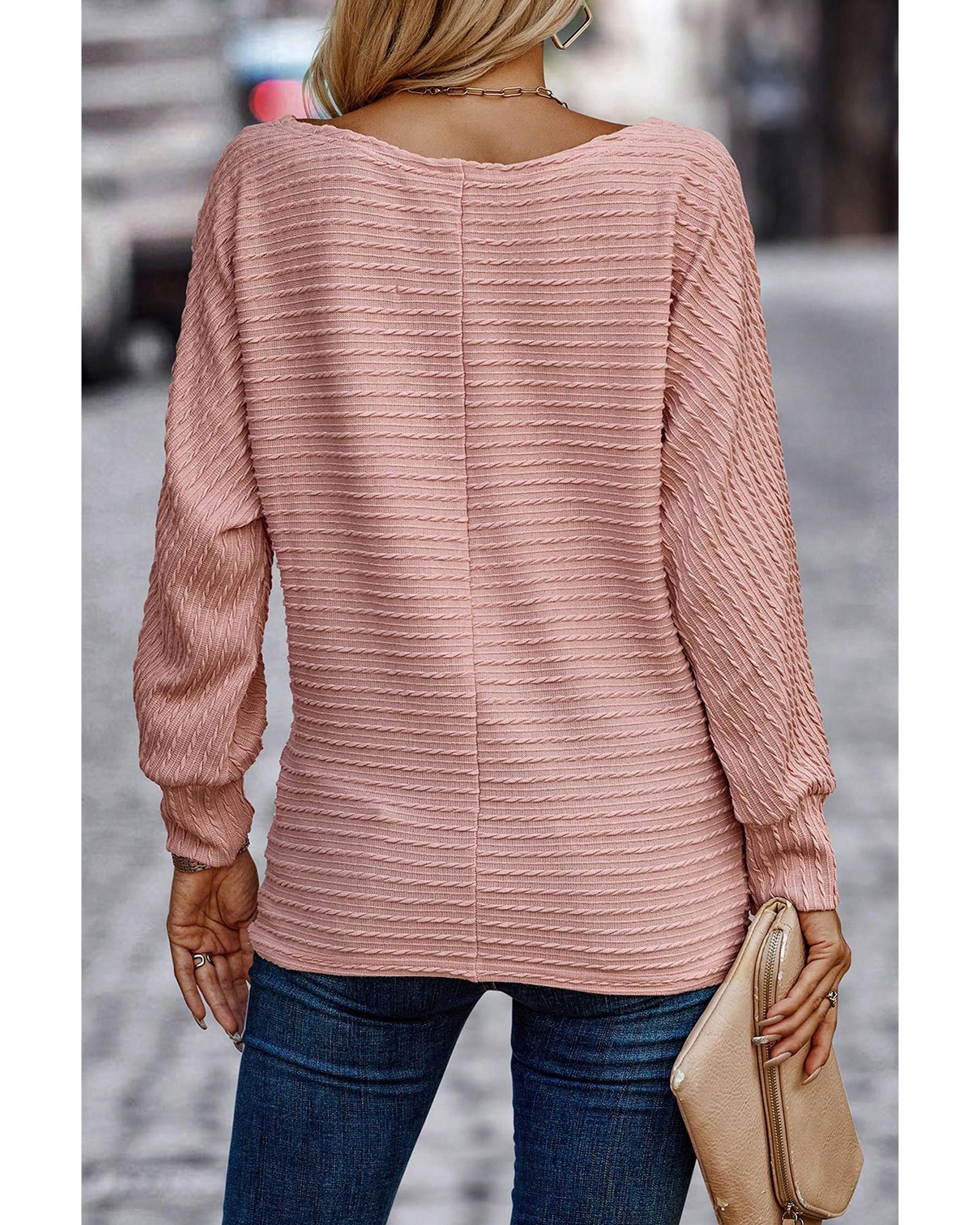 Dusty Pink Textured Knit Long Sleeve Top – L
