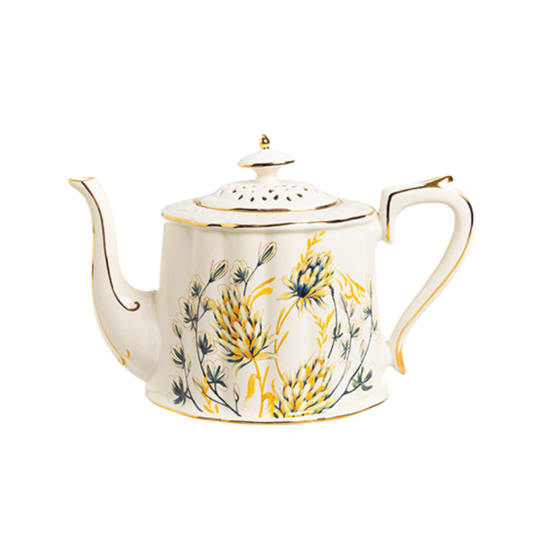 Ears of wheat European afternoon tea coffee cups saucers and teapot