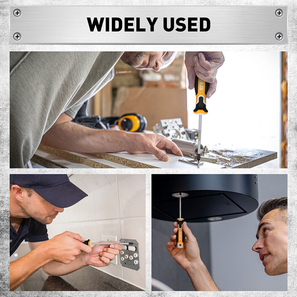 Screw drivers tool set be made of heat-treated magnetic screwdriver premium materials Chromium molybdenum vanadium steel, which is stronger than most carbon steels.Matte surface black tip treatment makes it beautiful and generous.