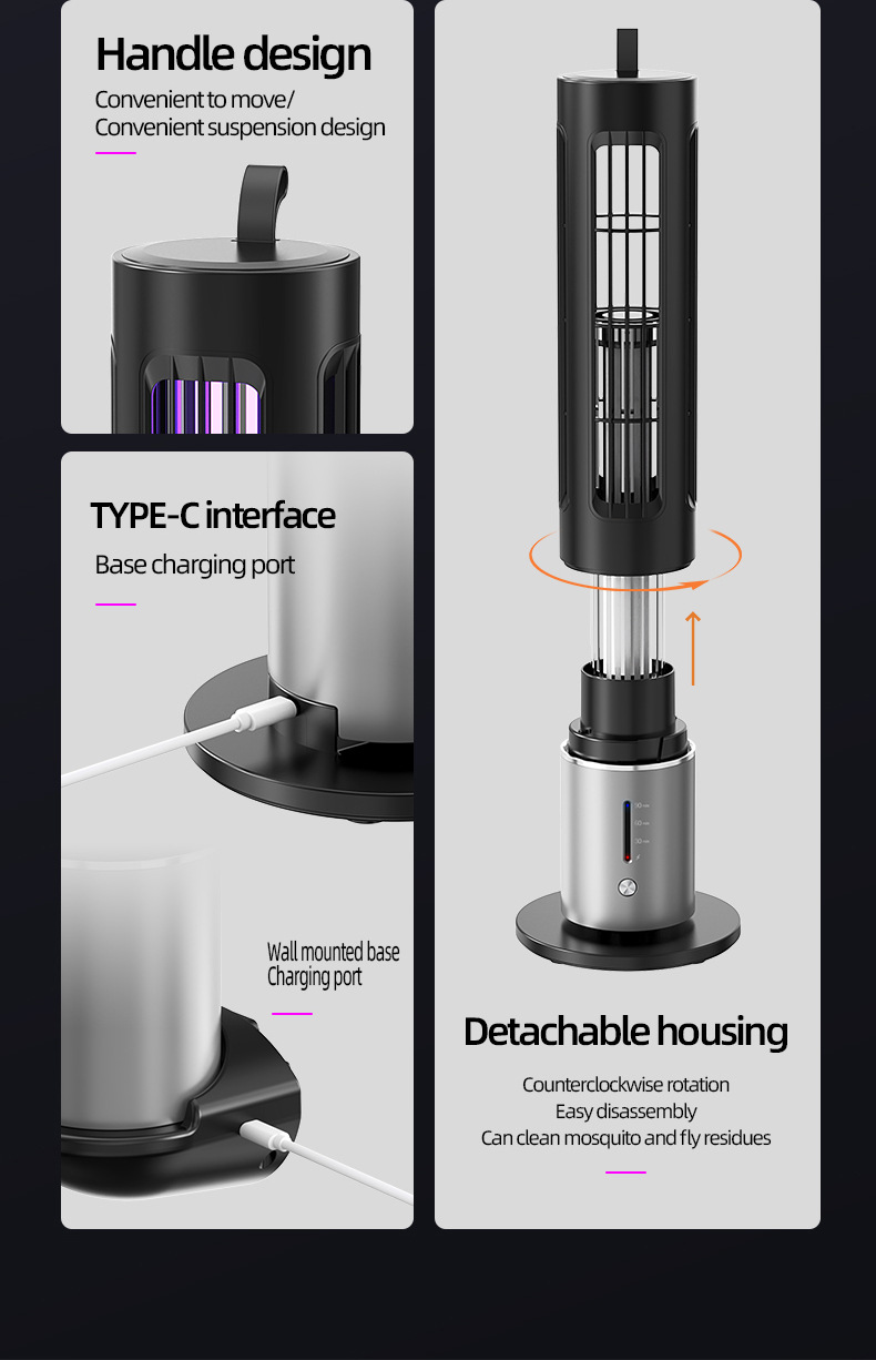 Electric Mosquito Killer Lamp with Detachable Housing and Timer Function – USB Rechargeable