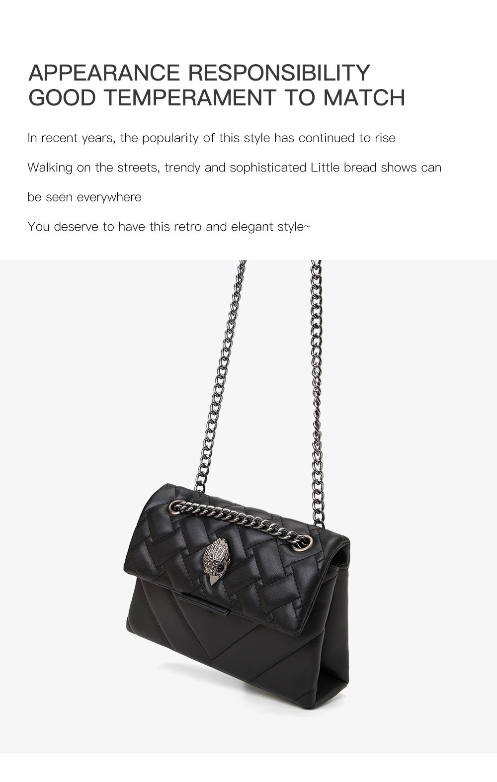 Elegant Quilted PU Leather Chain Bag with Bird Head Clasp – Retro Crossbody Shoulder Bag