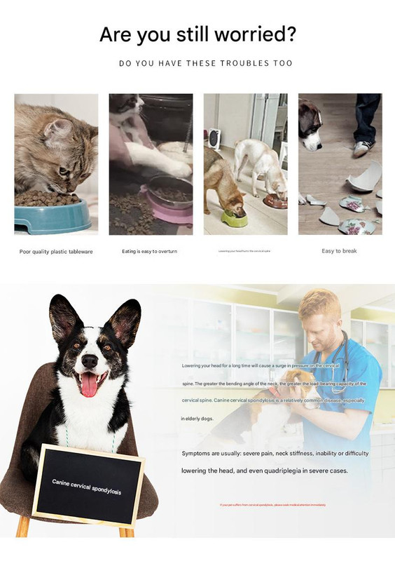 - Elevated Design for Comfort: Raises the food to a more comfortable height, protecting the pet’s cervical spine and reducing strain during eating.