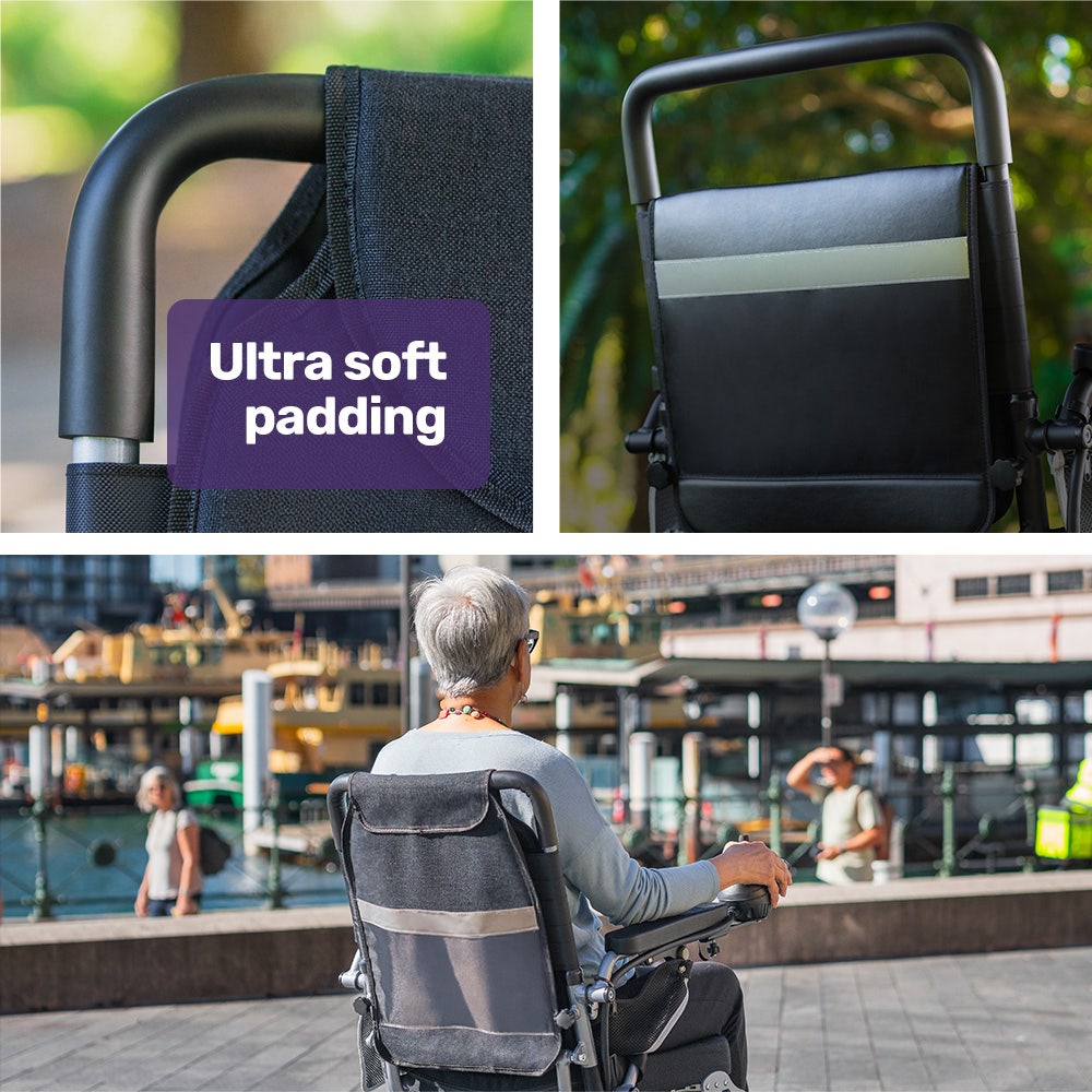 - Memory foam seat pad and padded backrests for comfort