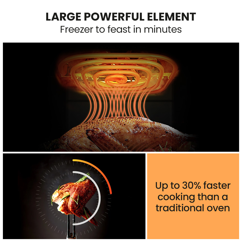 • Achieves a crispy texture with up to 80% less fat for healthier cooking