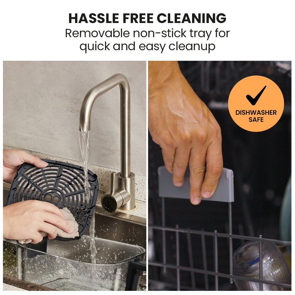 The advanced 360° air-circulation system delivers even cooking with up to 80% less fat, creating perfectly crispy results. The durable tempered glass container offers 360° visibility for monitoring progress, and its dishwasher-safe components make clean up effortless. Compact yet spacious, this air fryer is ideal for any kitchen, combining convenience with healthier cooking.