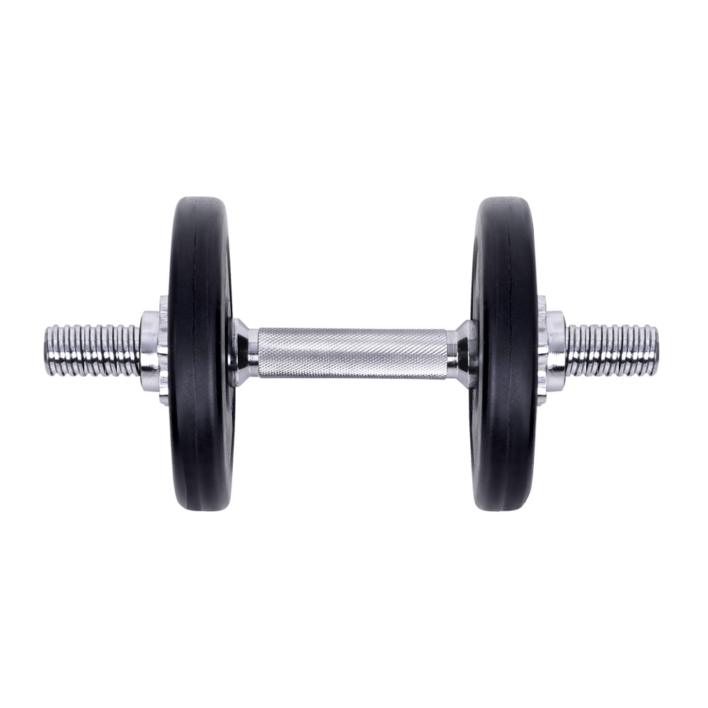 Time to get tough. If you are looking to boost those triceps, biceps and shoulders, our 10kg Dumbbell Set is the perfect deal for you. Whatever your game is, our dumbbell set lets you strengthen and tone those muscles your way. This commercial-grade set features a high-quality bar with non-slip handle that offers optimal gripping surface. Each weight plate weighs 1.25kg and is made of cast cement coated with smooth plastic, reducing clanging sounds and making them more floor-friendly. You can adjust the weight of the dumbbell by removing the weight plate and only using the dumbbell bar (weighing 2.5kg each) or adding more compatible weight plates. The high-quality star-shaped nuts ensure the weight plates stay securely in place for safe workouts. Best of all, the dumbbell comes in a set of two (two 5kg dumbbells for 10kg total) so that you can exercise both arms at the same time. Gym junkie or workout pro, you can get fit easily with our 10kg Dumbbell Set.