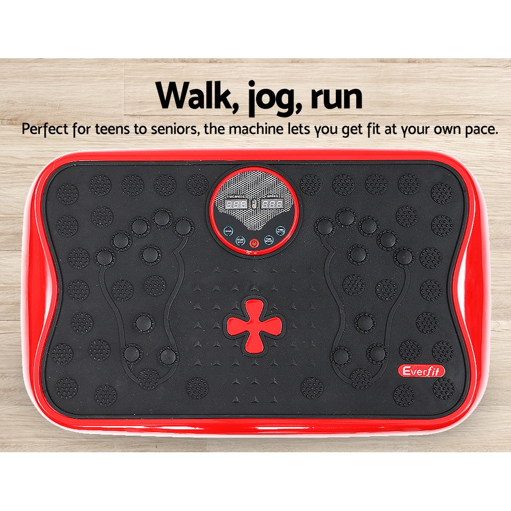Everfit Vibration Machine Platform Vibrator with Resistance Rope Home Gym Red