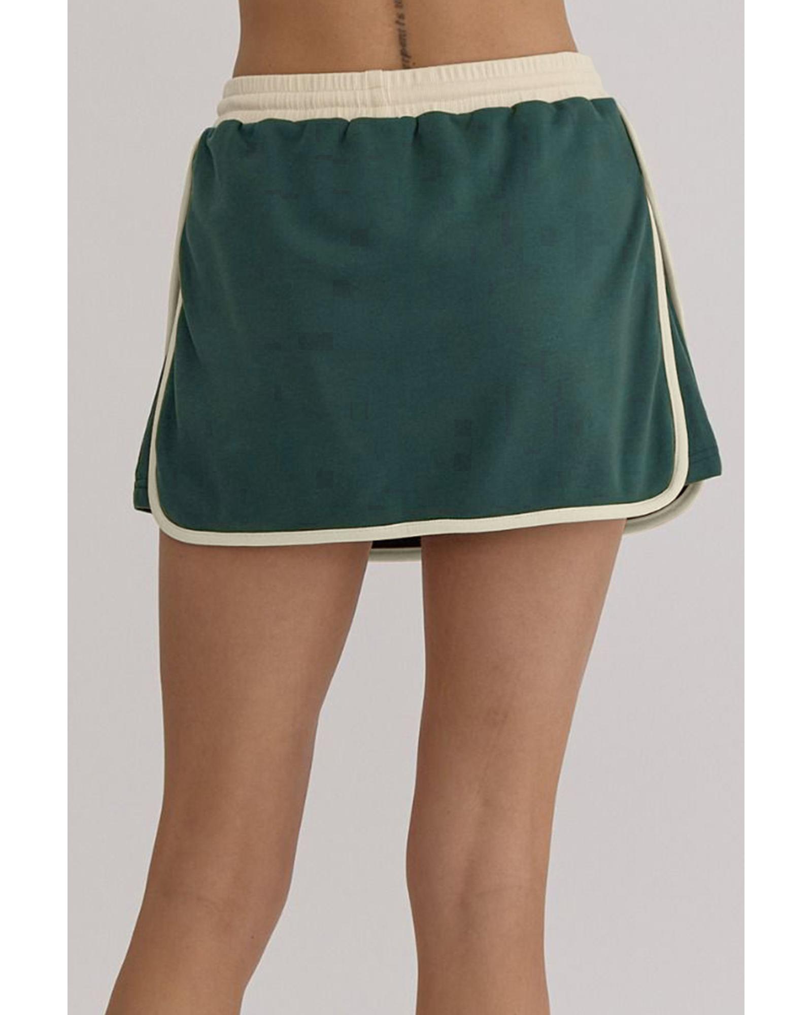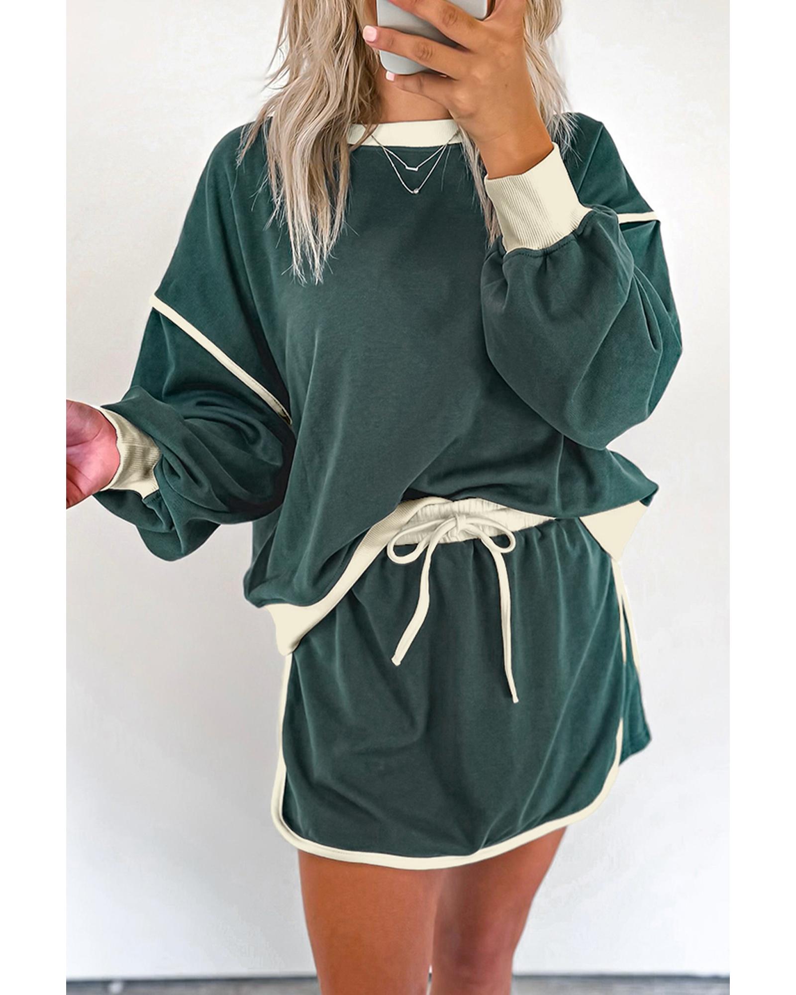 Evergreen Color Contrast Loose Pullover and Lace-up Waist Skort Set – S