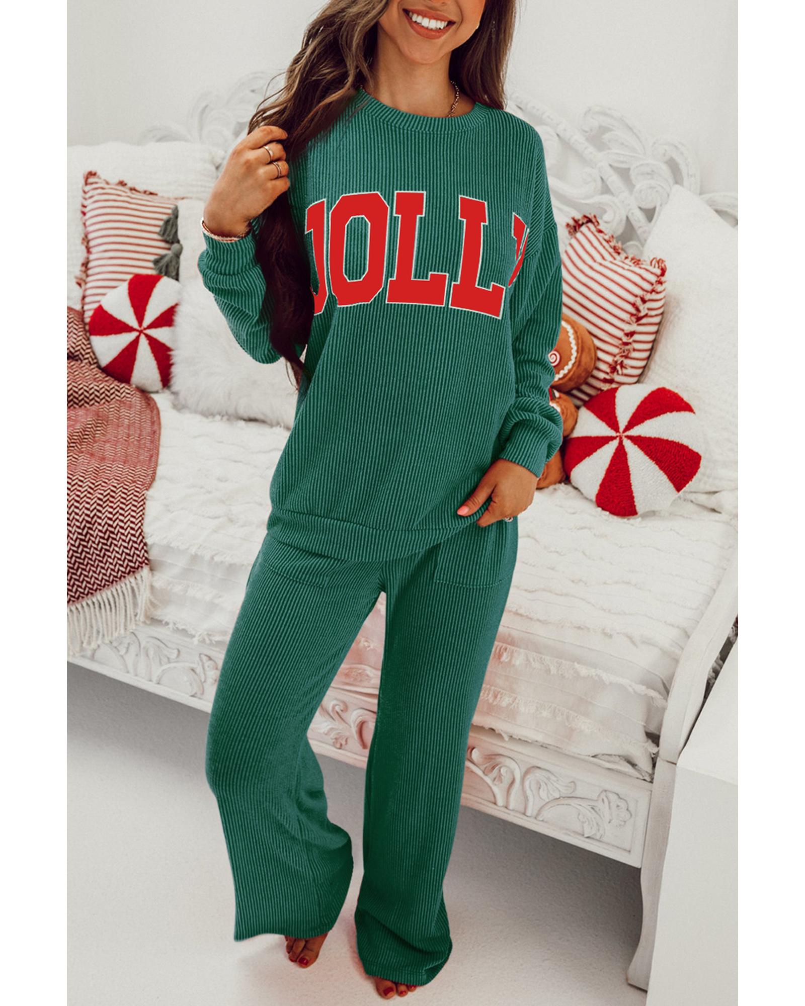 Evergreen JOLLY Corded Long Sleeve Top and Pockets Pants Set – S