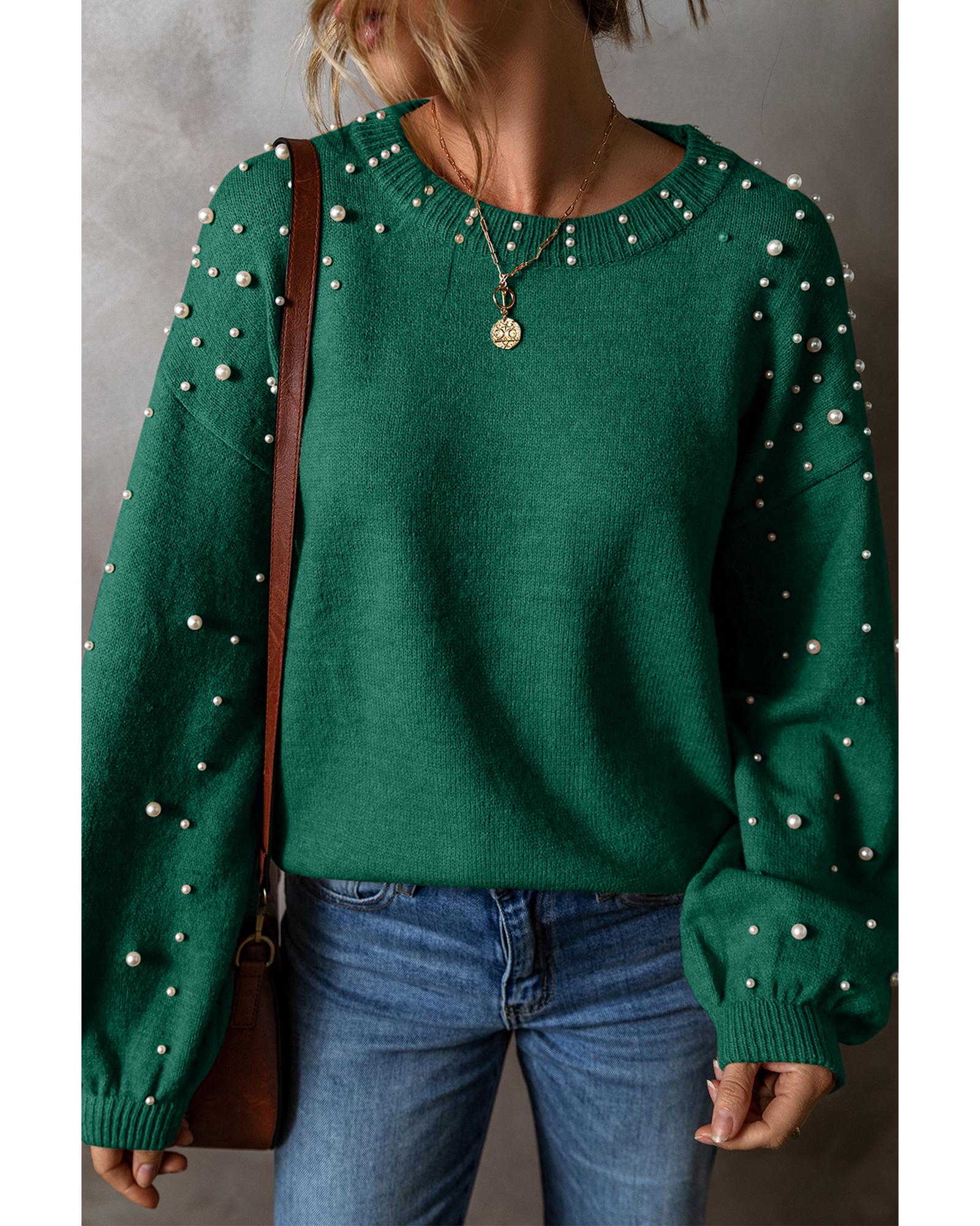 Evergreen Pearled Drop Shoulder Round Neck Sweater – XL