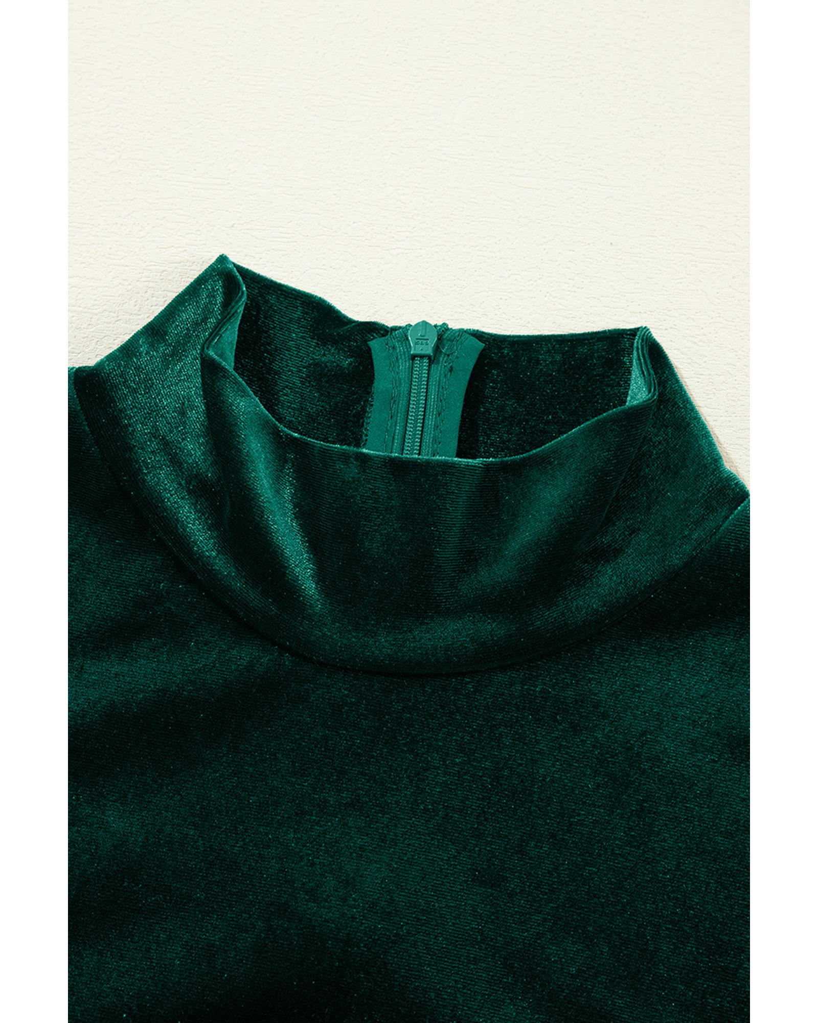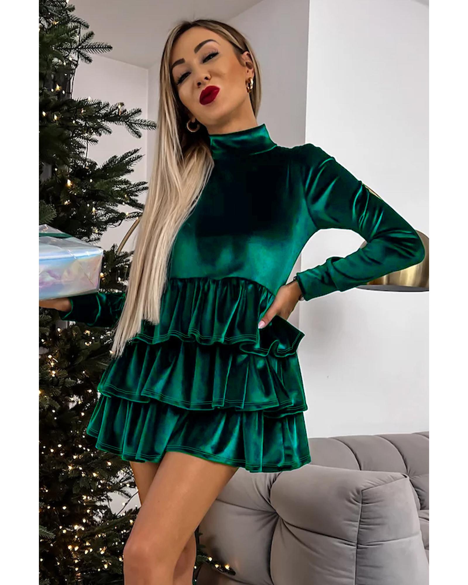 Evergreen Velvet High Neck Tiered Ruffle Mini Dress – L