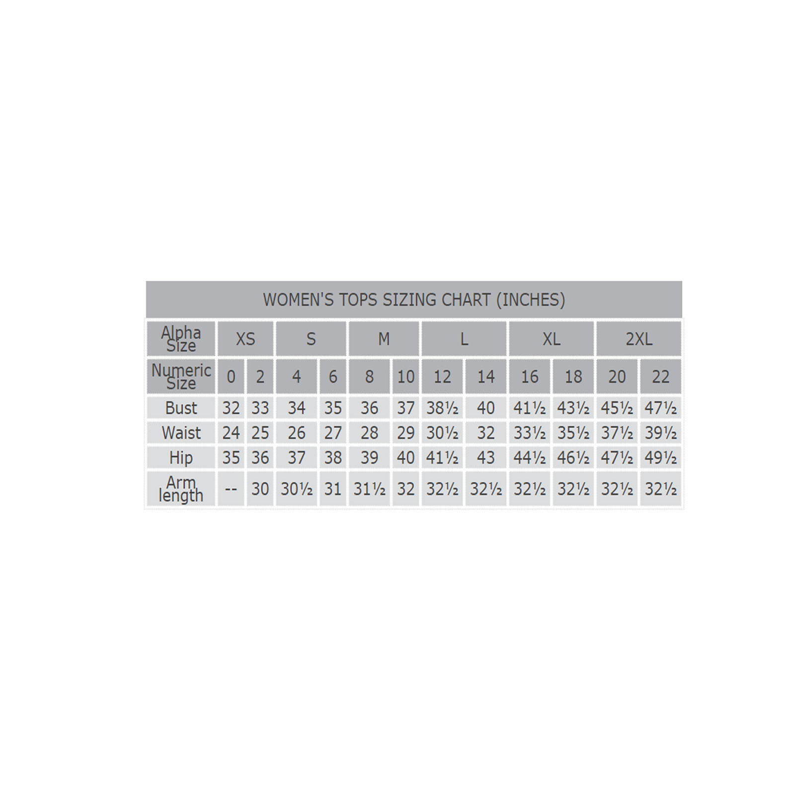 WOMEN’S TOPS SIZING CHART (INCHES)