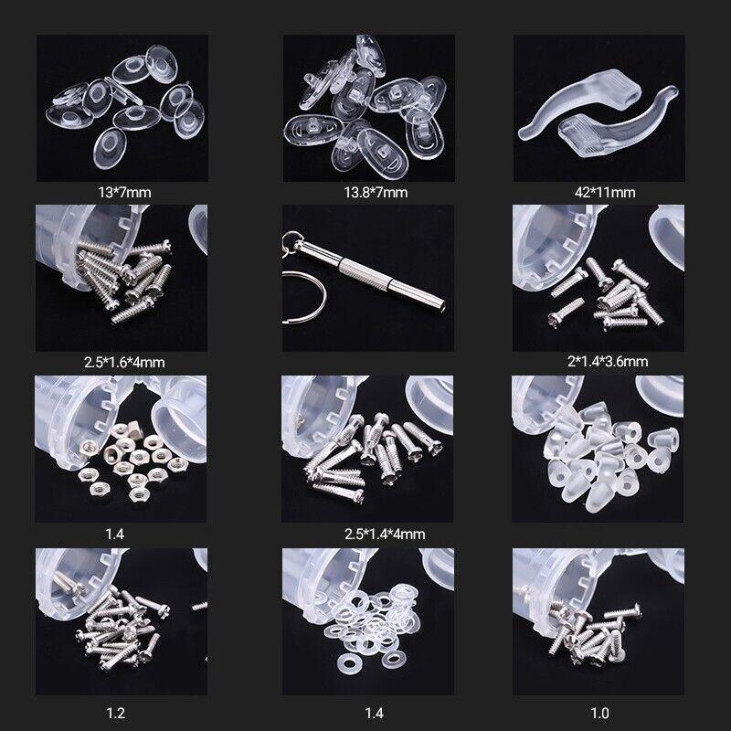 Eyeglass Sun Glasses Optical Repair Tool Screw Nut Nose Pad Assortment Set Kit