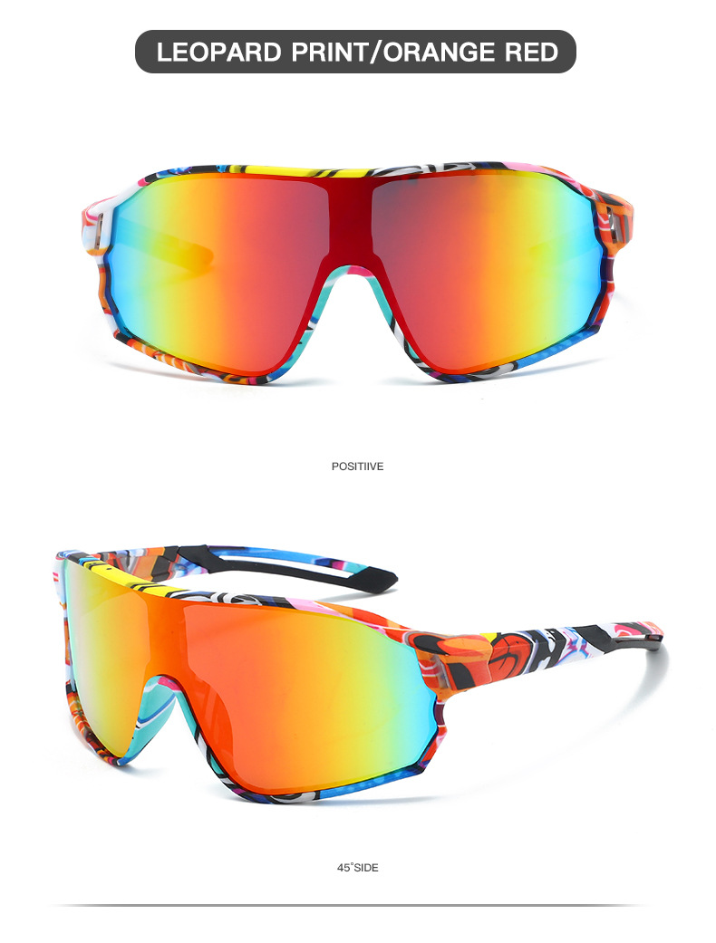 Fashionable Sports Sunglasses with Colorful Mirror Lenses – UV400 Protection for Cycling & Outdoor Activities Leopard