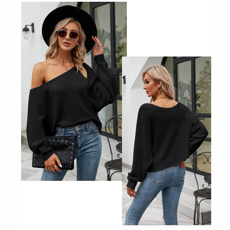 • 1 x Female Sexy Strapless Knit Shirt Loose Bat Sleeve Knitted Tops