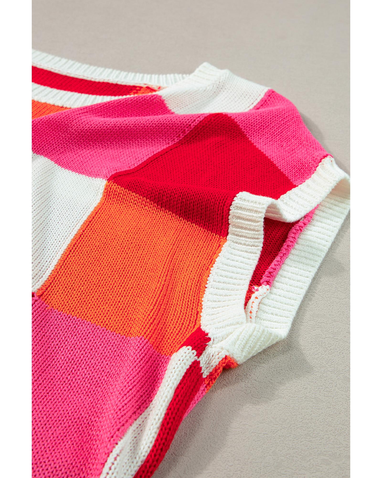 Fiery Red Color Block Cap Sleeve Sweater – L
