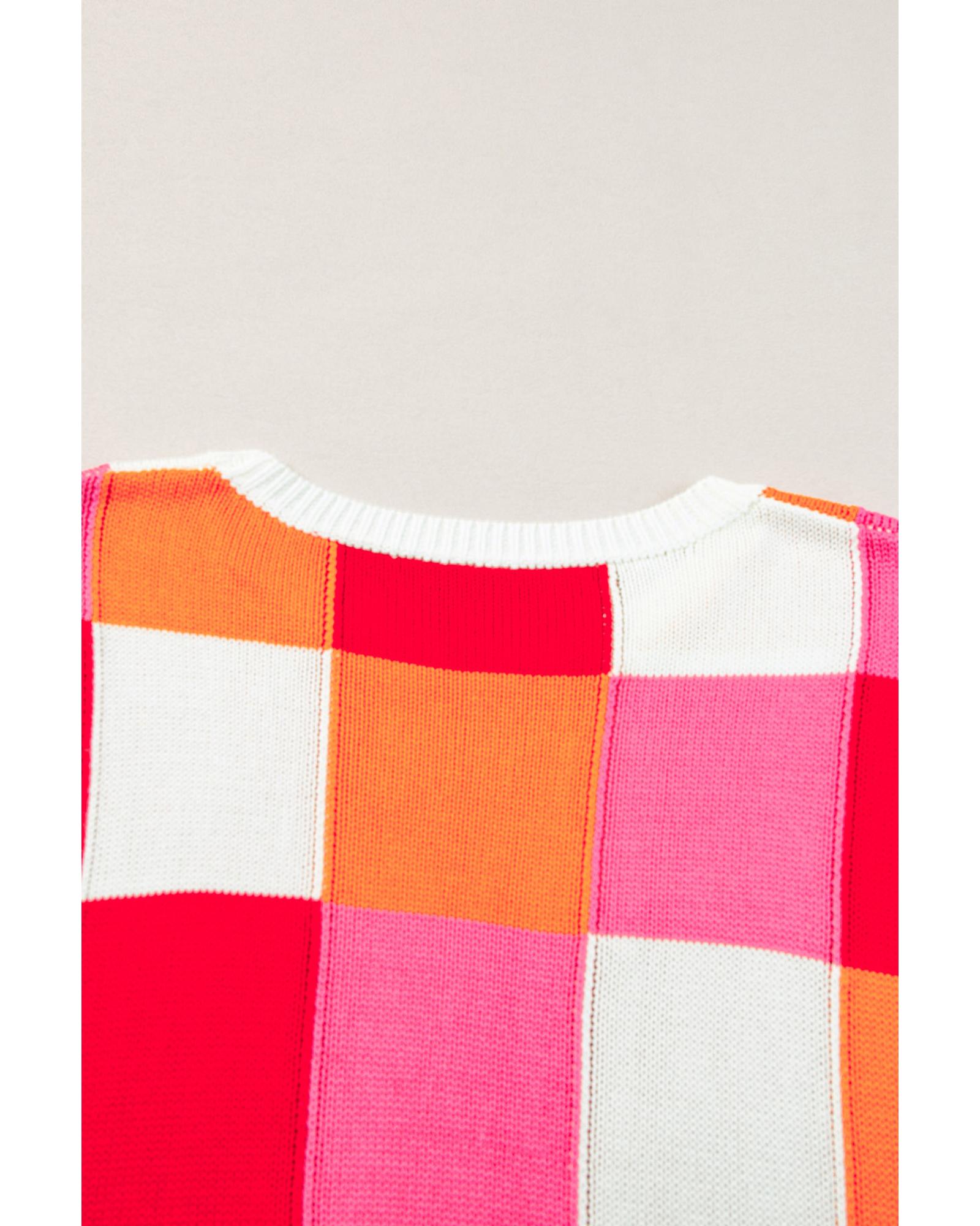 Fiery Red Color Block Cap Sleeve Sweater – M