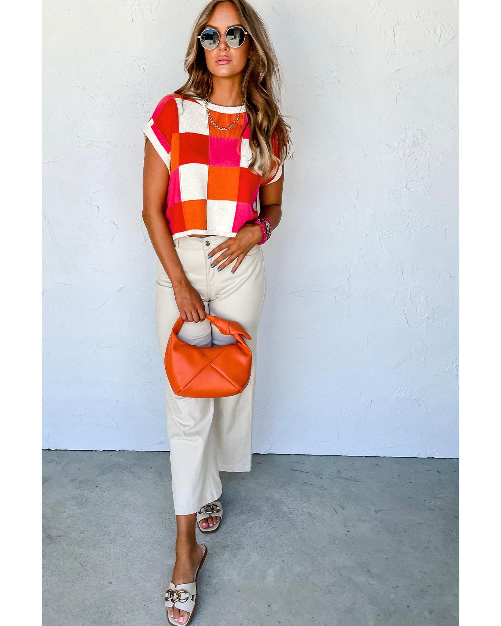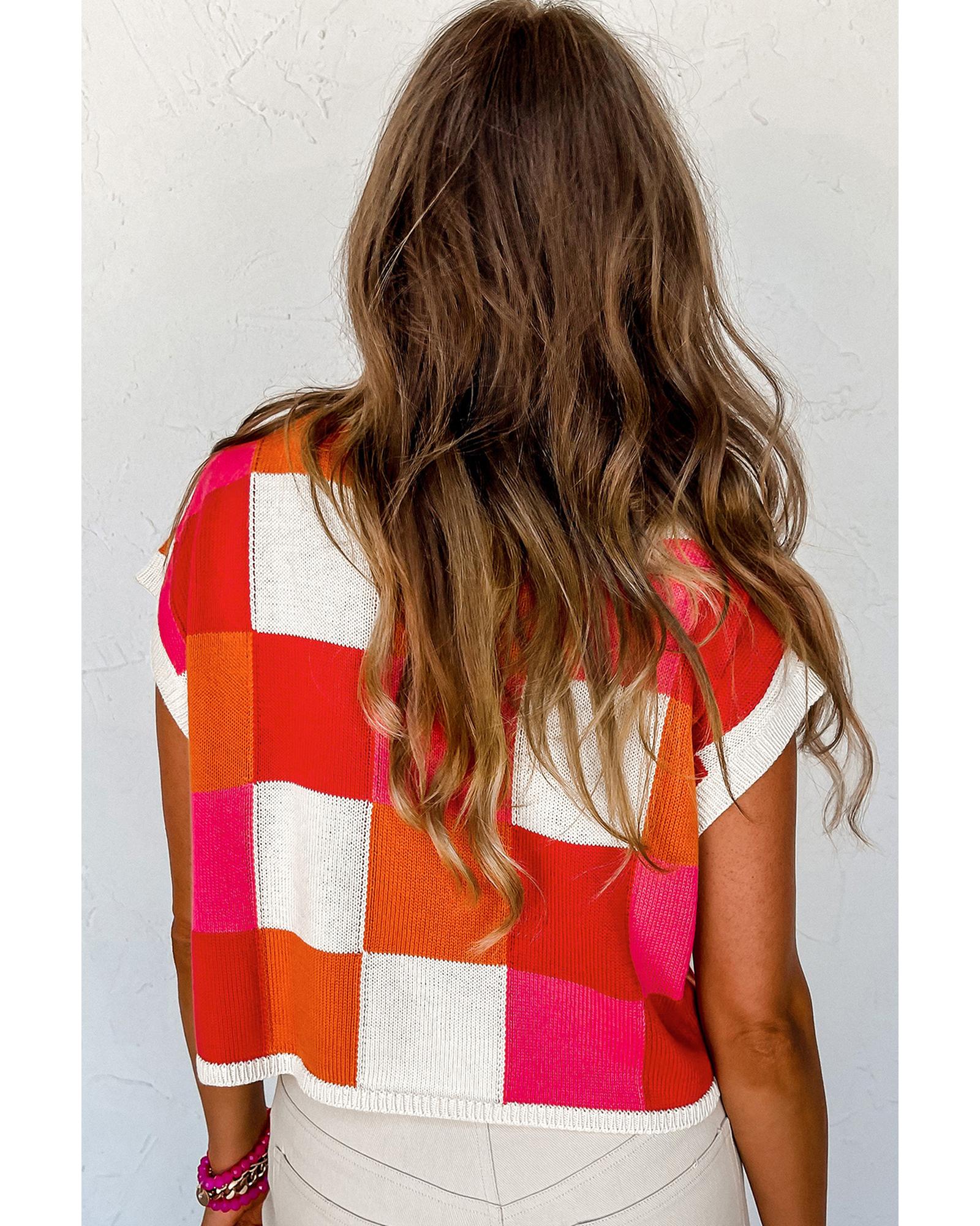 Fiery Red Color Block Cap Sleeve Sweater – XL