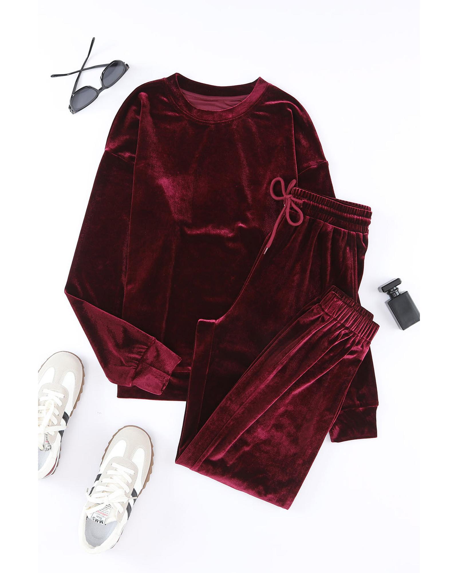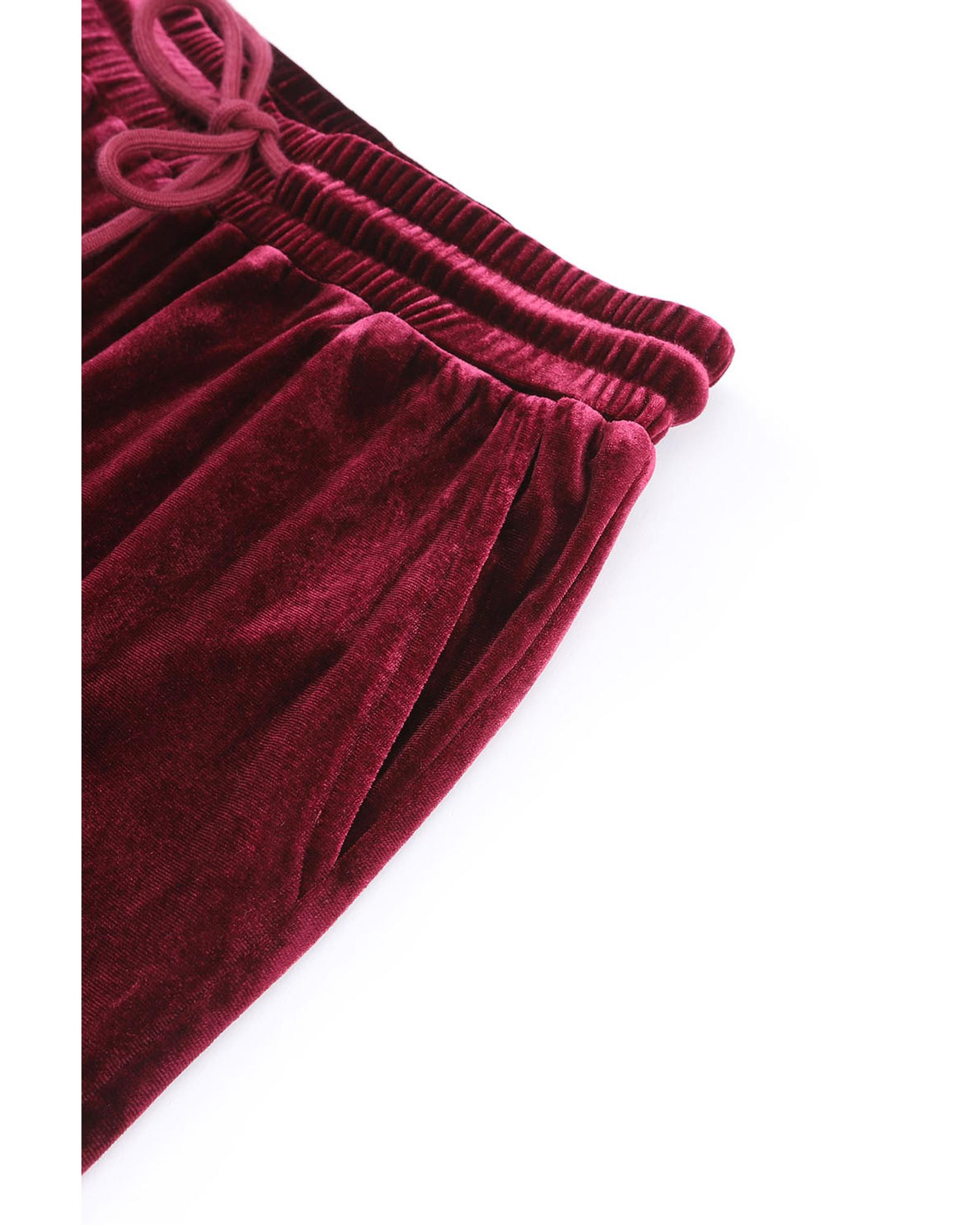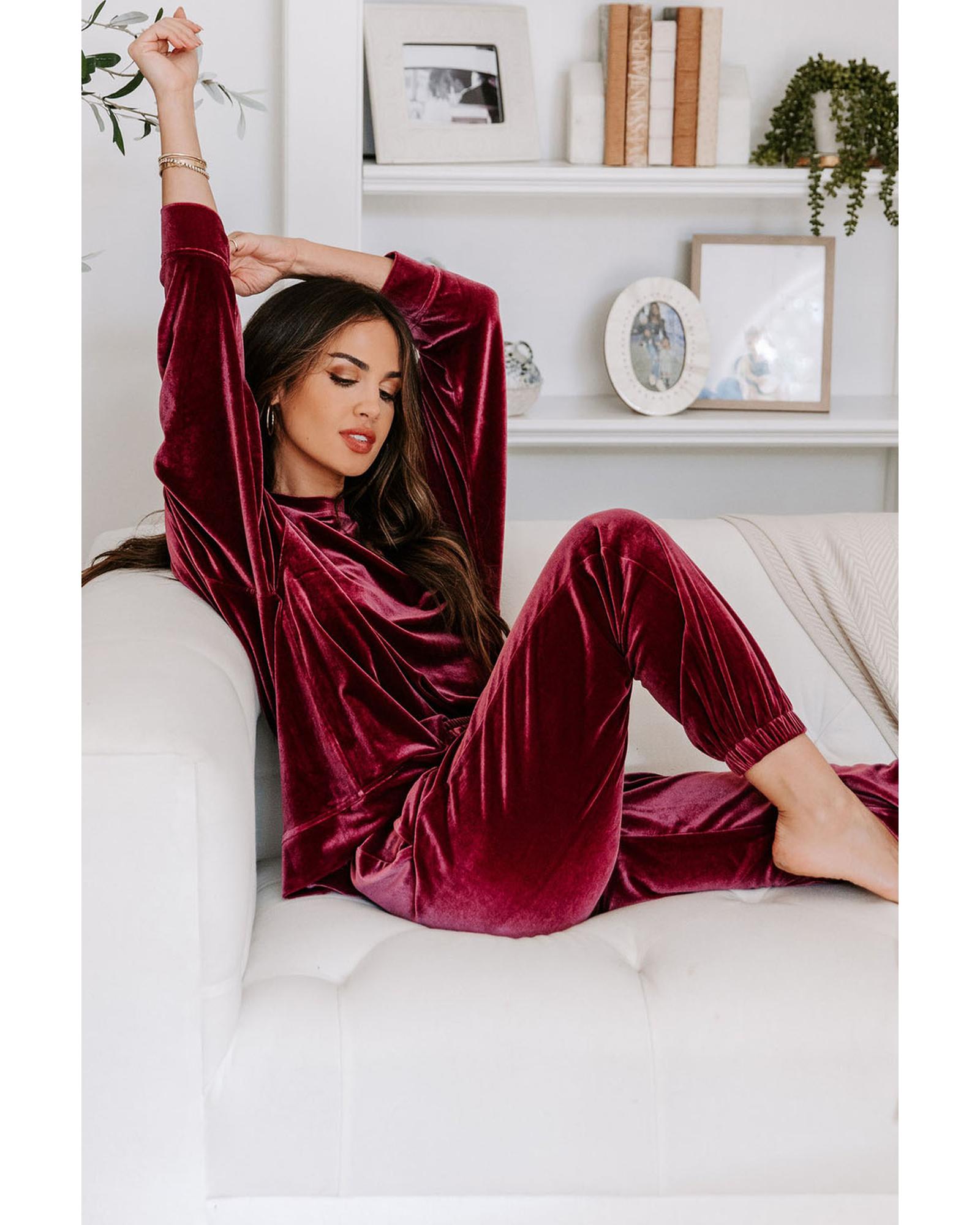 - Fiery Red Solid Velvet Two Piece Lounge Set