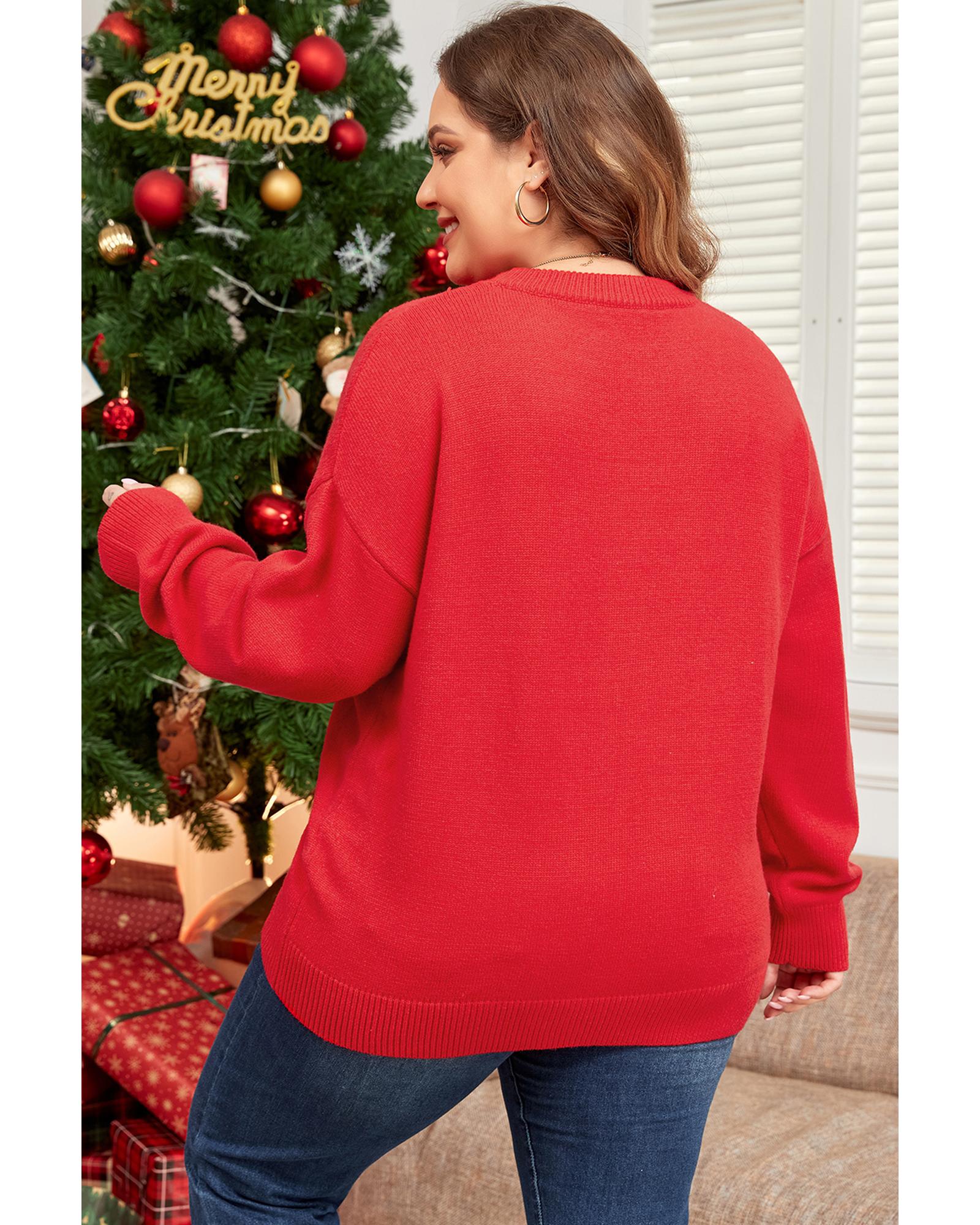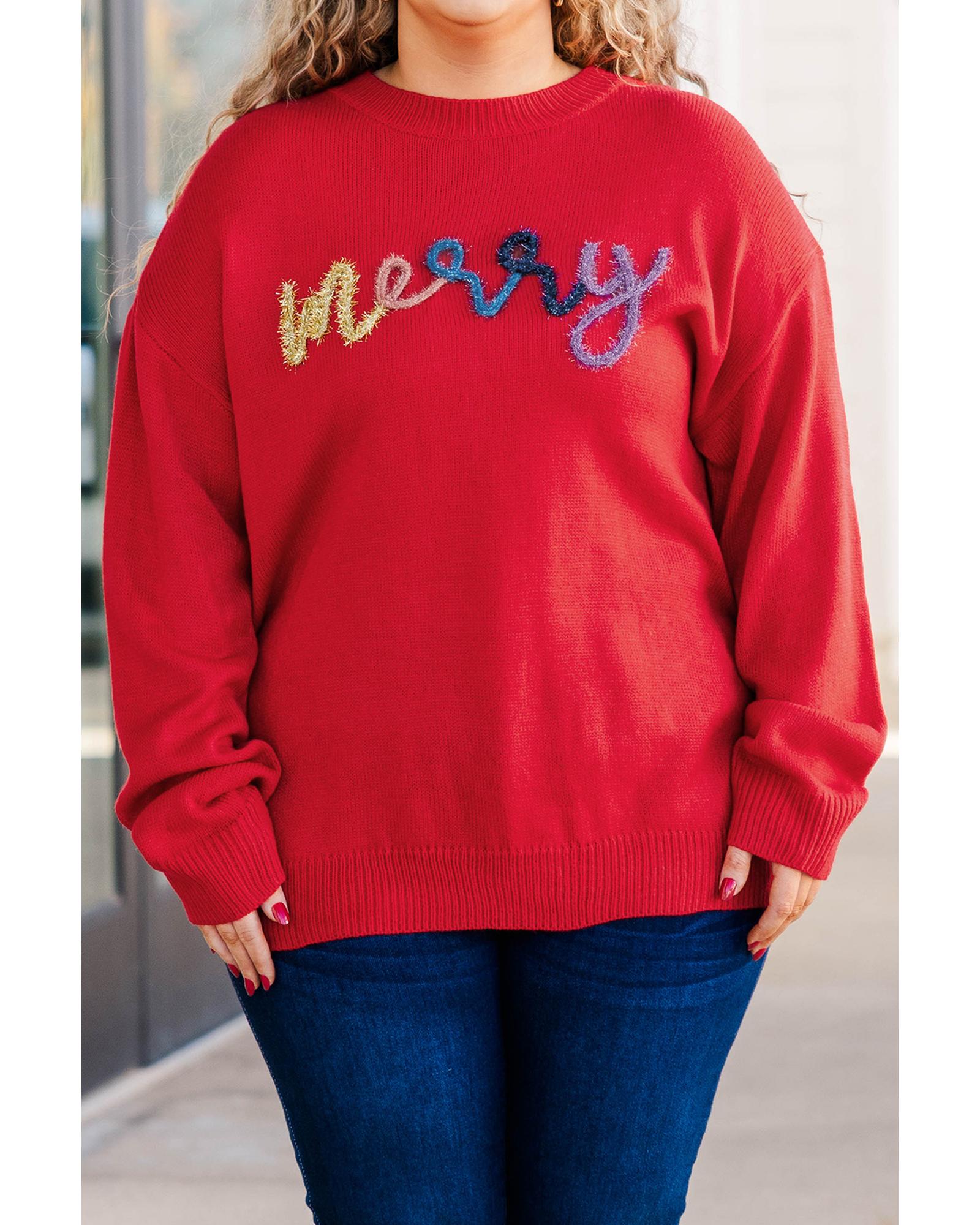Fiery Red Tinsel merry Pattern Drop Shoulder Plus Size Sweater – 4X