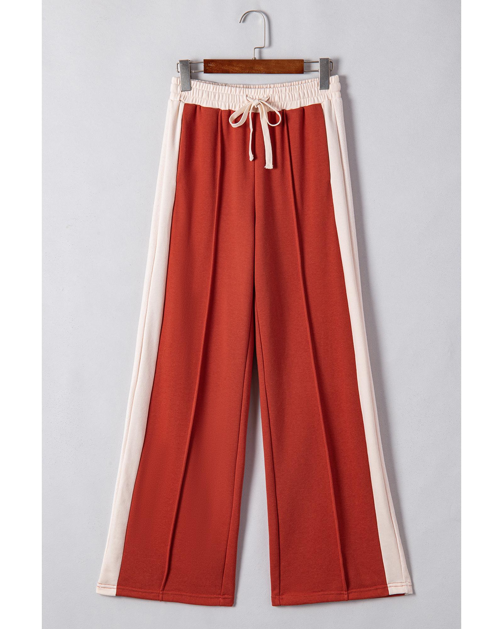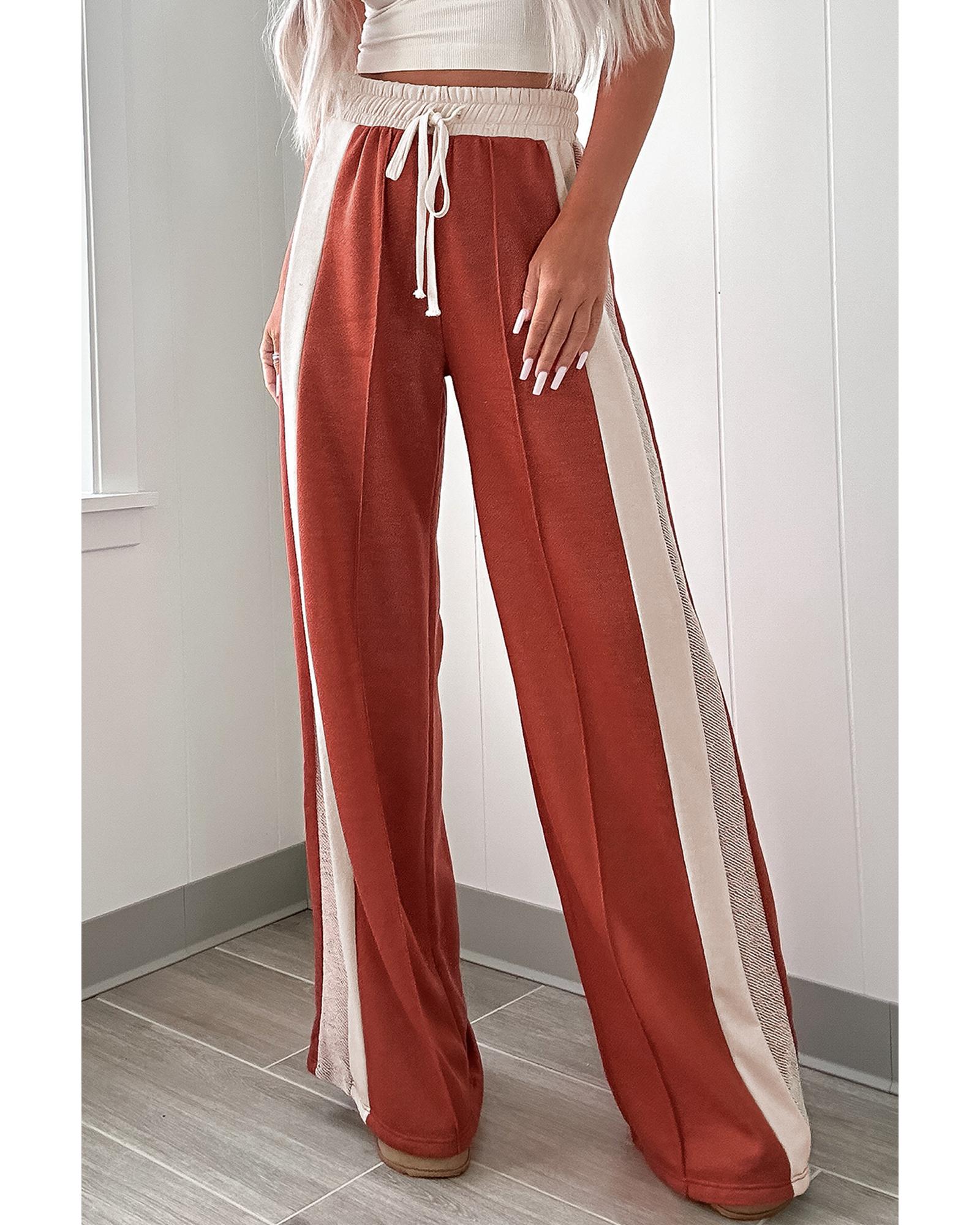 Flamingo Color Block Drawstring High Waist Wide Leg Pants – L