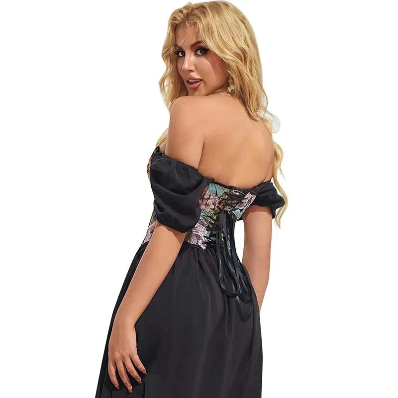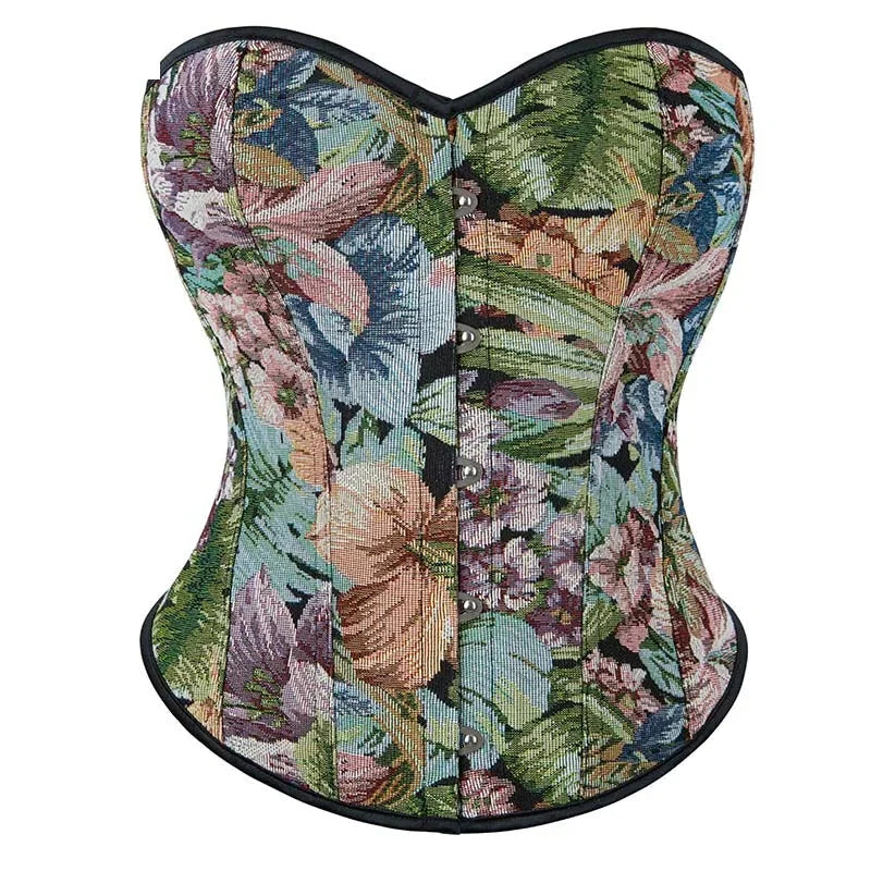 • 1 x Floral Embroidered Renaissance Corset With Front Busk Closure And Back Lace Women Victorian Bustier