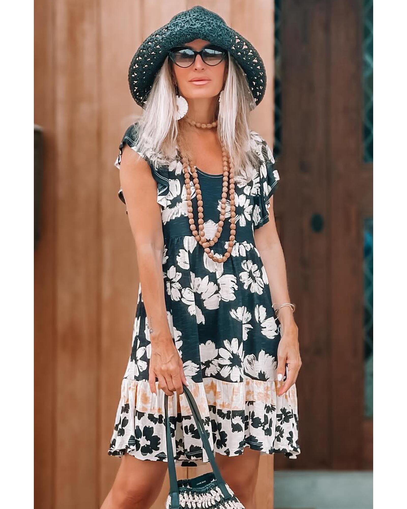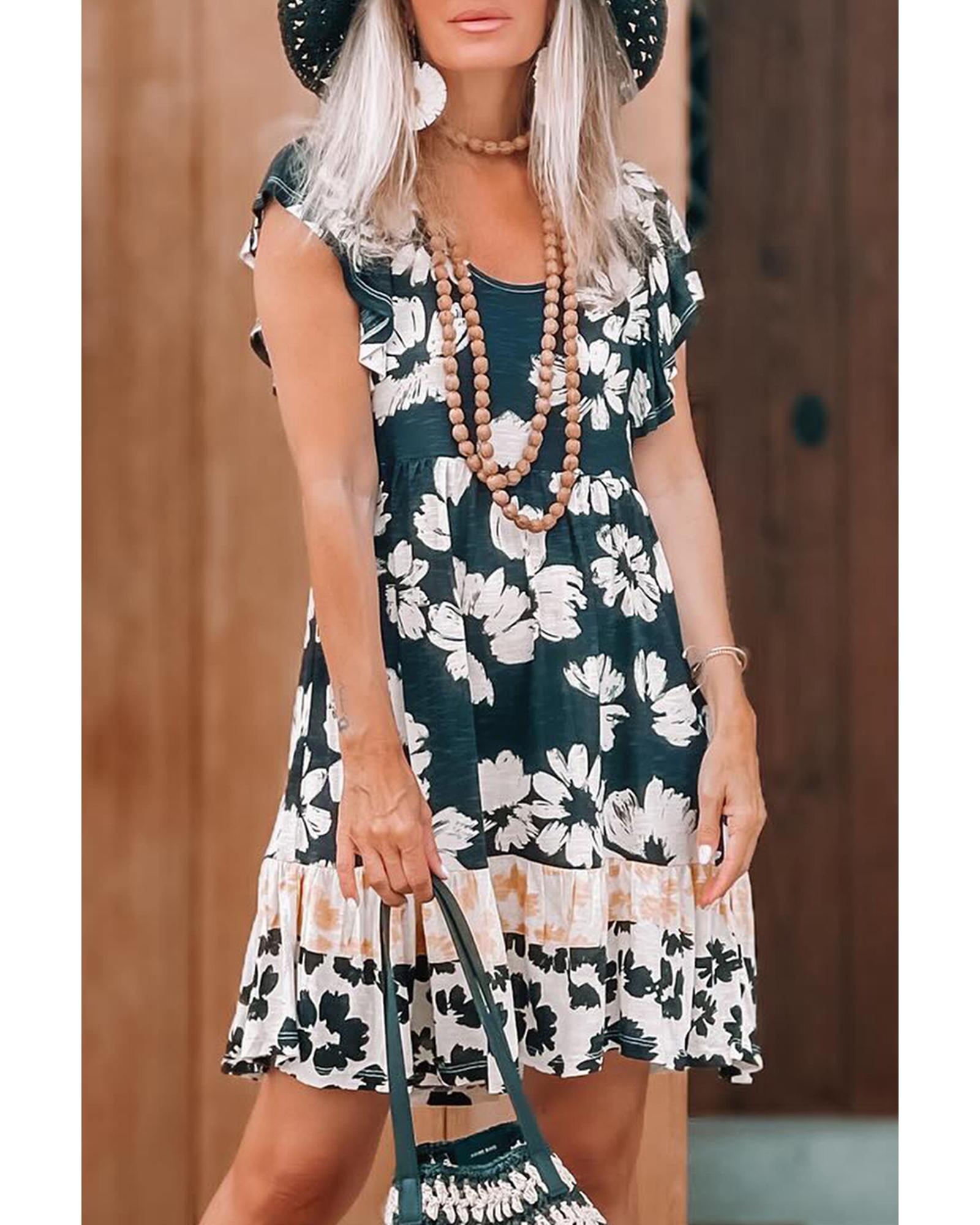 Floral Print Ruffle Sleeve Empire Waist Mini Dress – XL