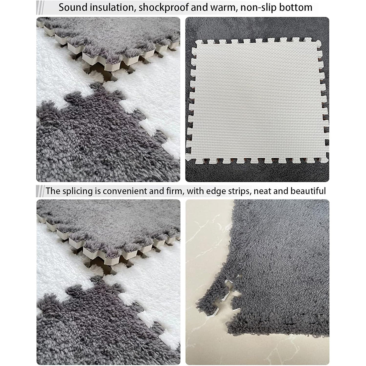 Foam Floor Mats Set 10PCS Shaggy Interlocking Tiles Soft for Kids Room Play Area – Camel-White