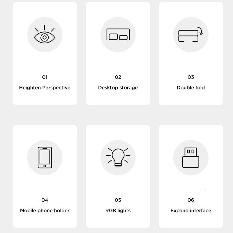 • 1 x Monitor Increased Rack Foldable Laptop Stand With RGB Lighting 4xUSB2.0 Expansion Interface
