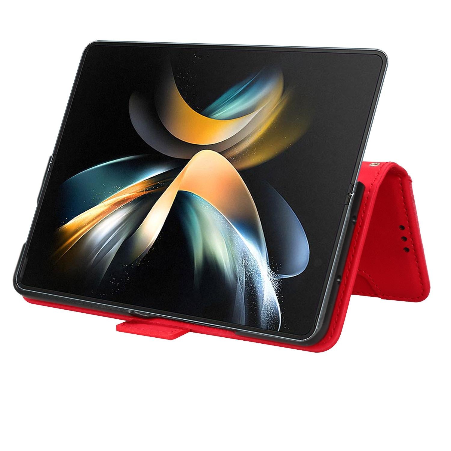 For Samsung Galaxy Z Fold4 5G Leather Phone Case With Card Slots And Calf Texture – Red