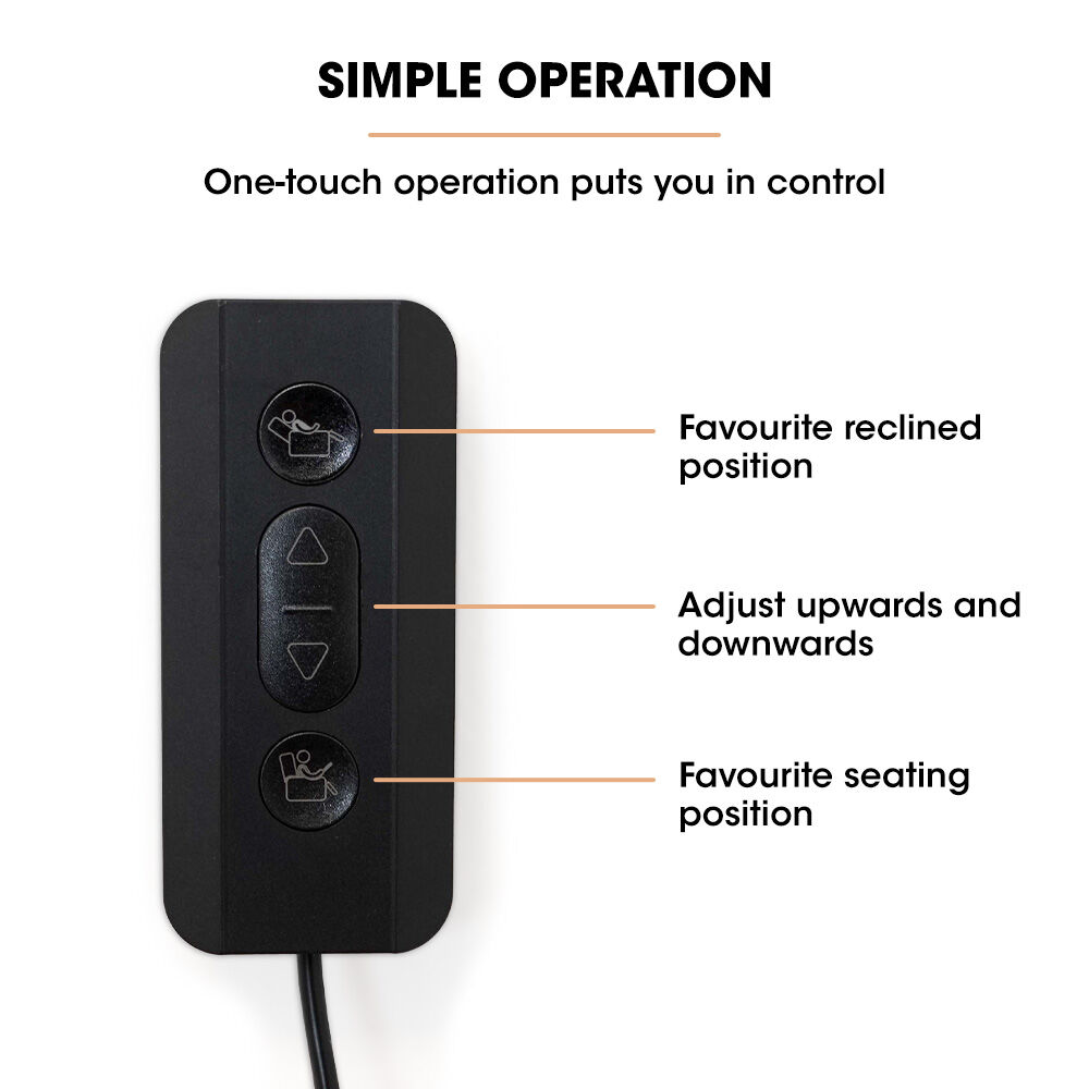 A simple wired remote lets you find your perfect setting and even save up to two positions for quick access. Whether you’re unwinding after work or enjoying your favourite show, the FORTIA Recliner adapts to your comfort needs with ease.