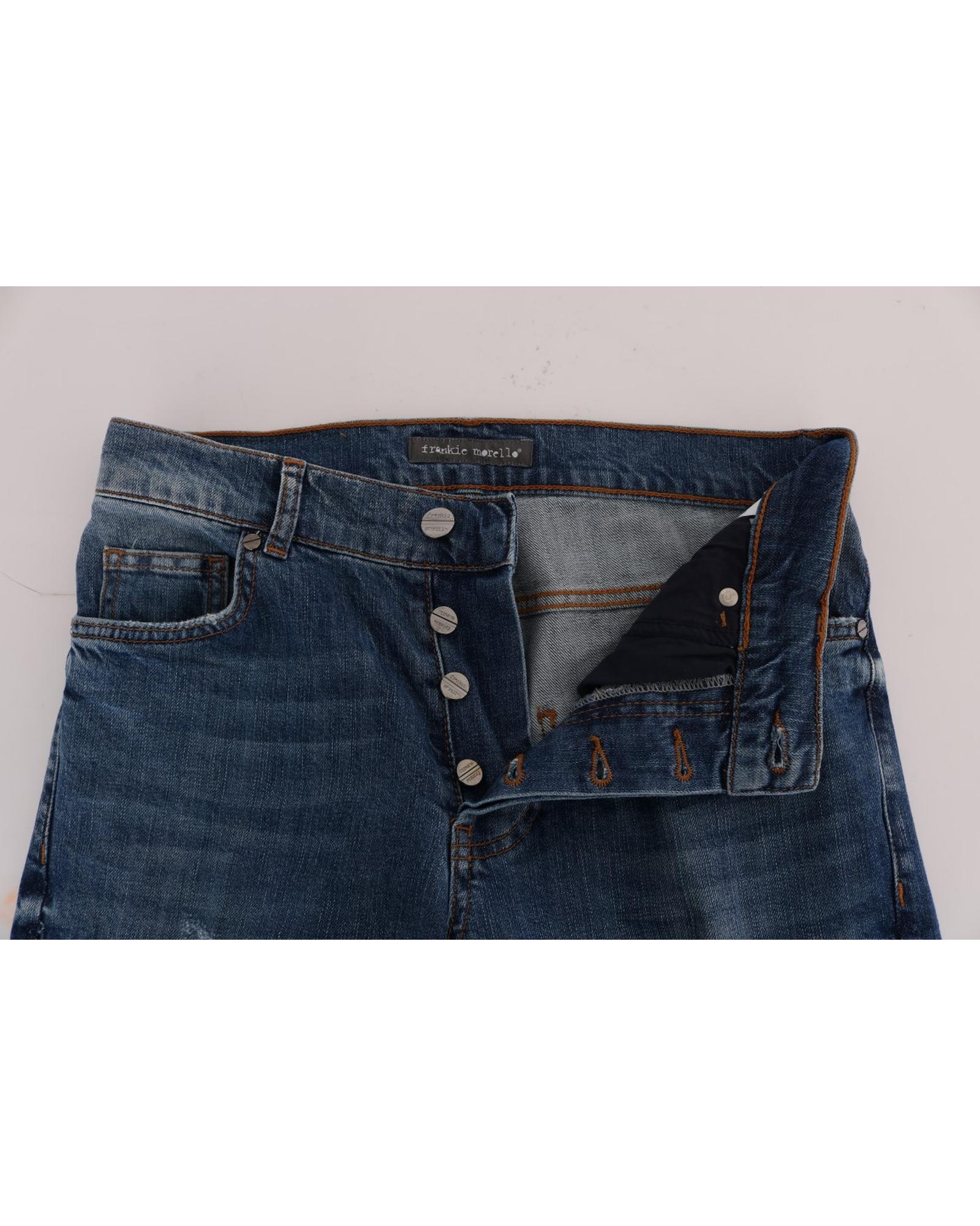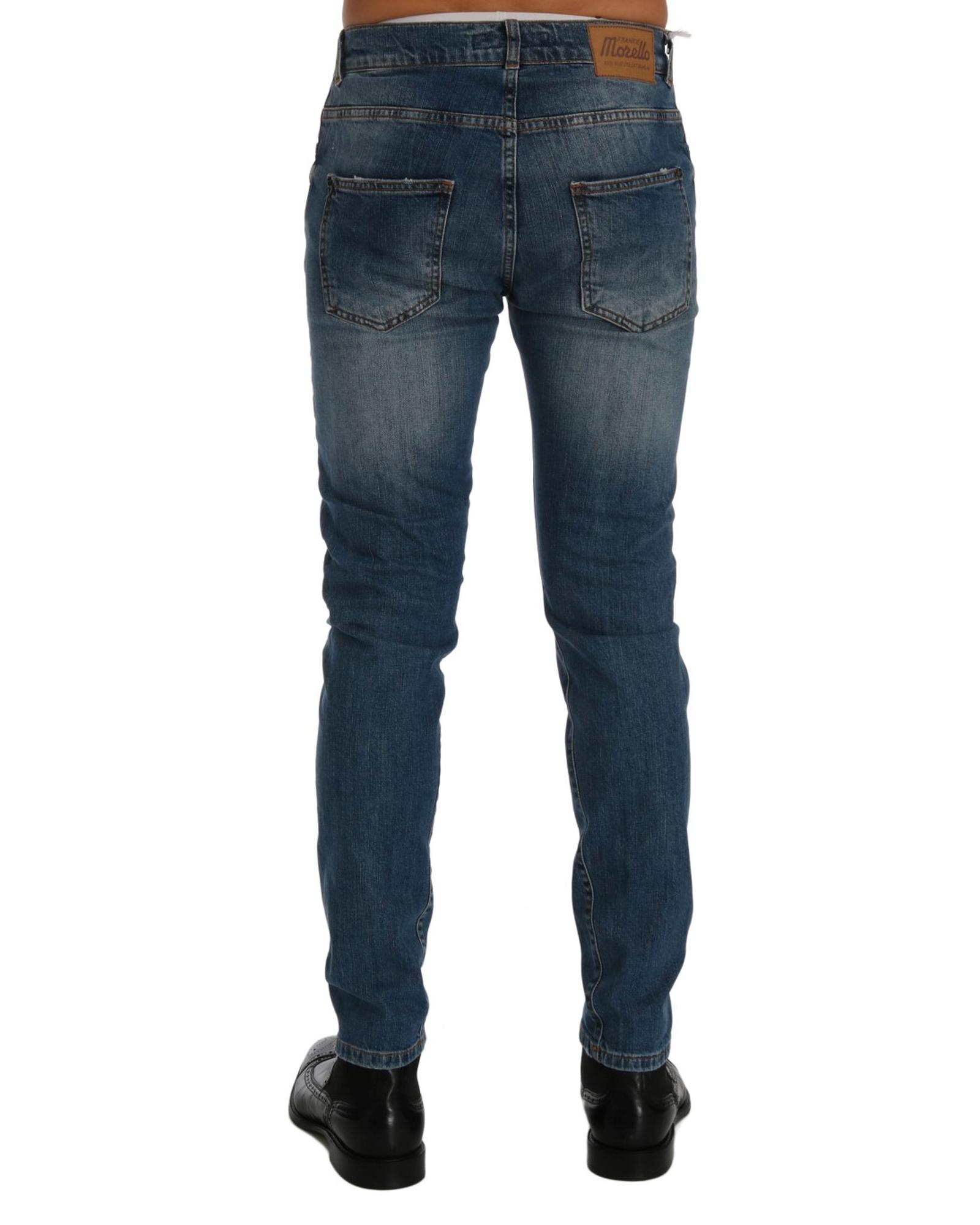 Frankie Morello Men’s Blue Wash Torn Dunfermile Slim Fit Jeans – W36 US