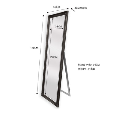 French Provincial Ornate Mirror – Black – Free Standing 50cm x 170cm