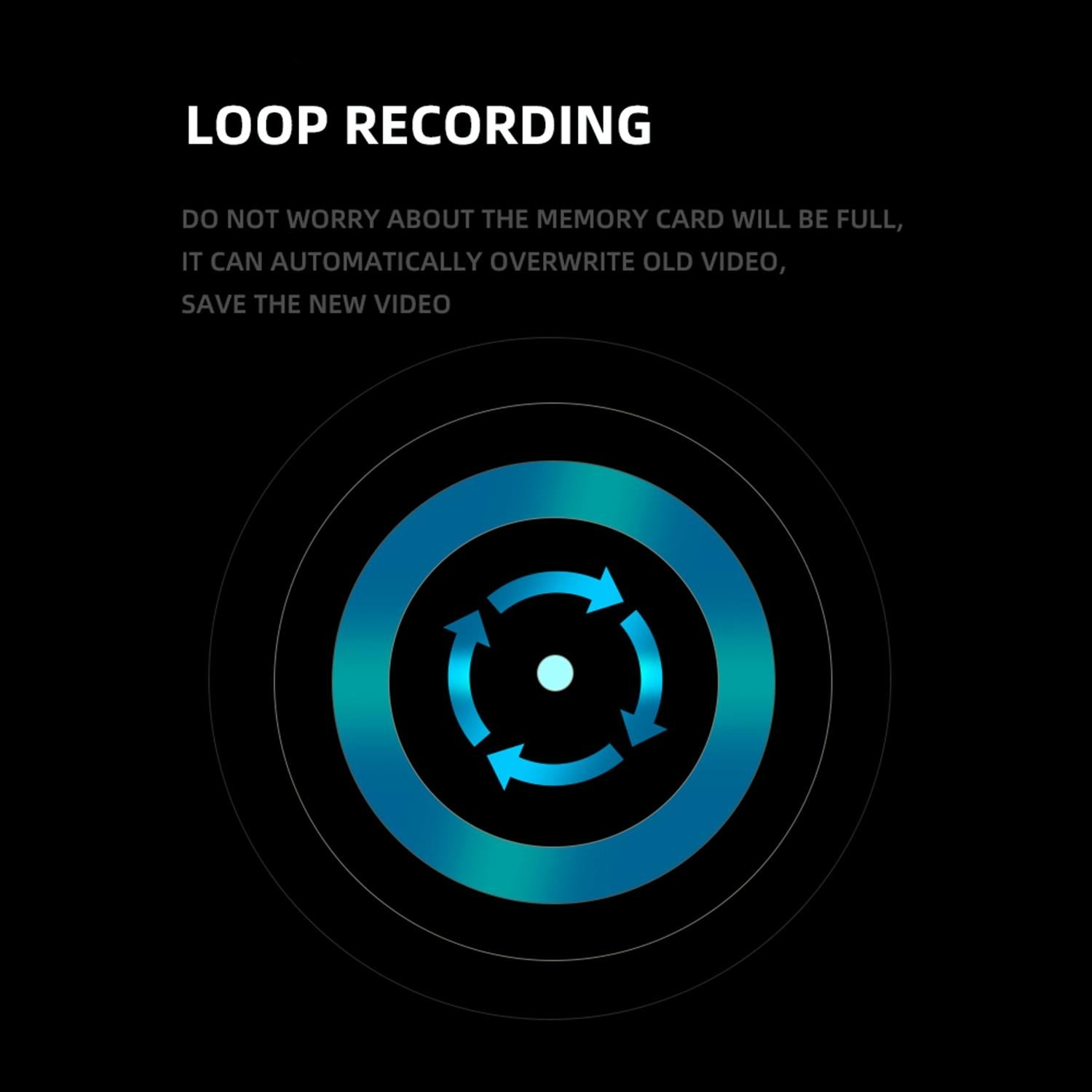 • Loop recording and G-sensor automatically overwrite the earliest video and lock and store videos in case of sudden shock.
