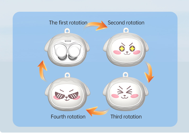 • Dynamic Rotating Face-Changing Case: Unique 360-degree rotating charging case that reveals different cute facial expressions.