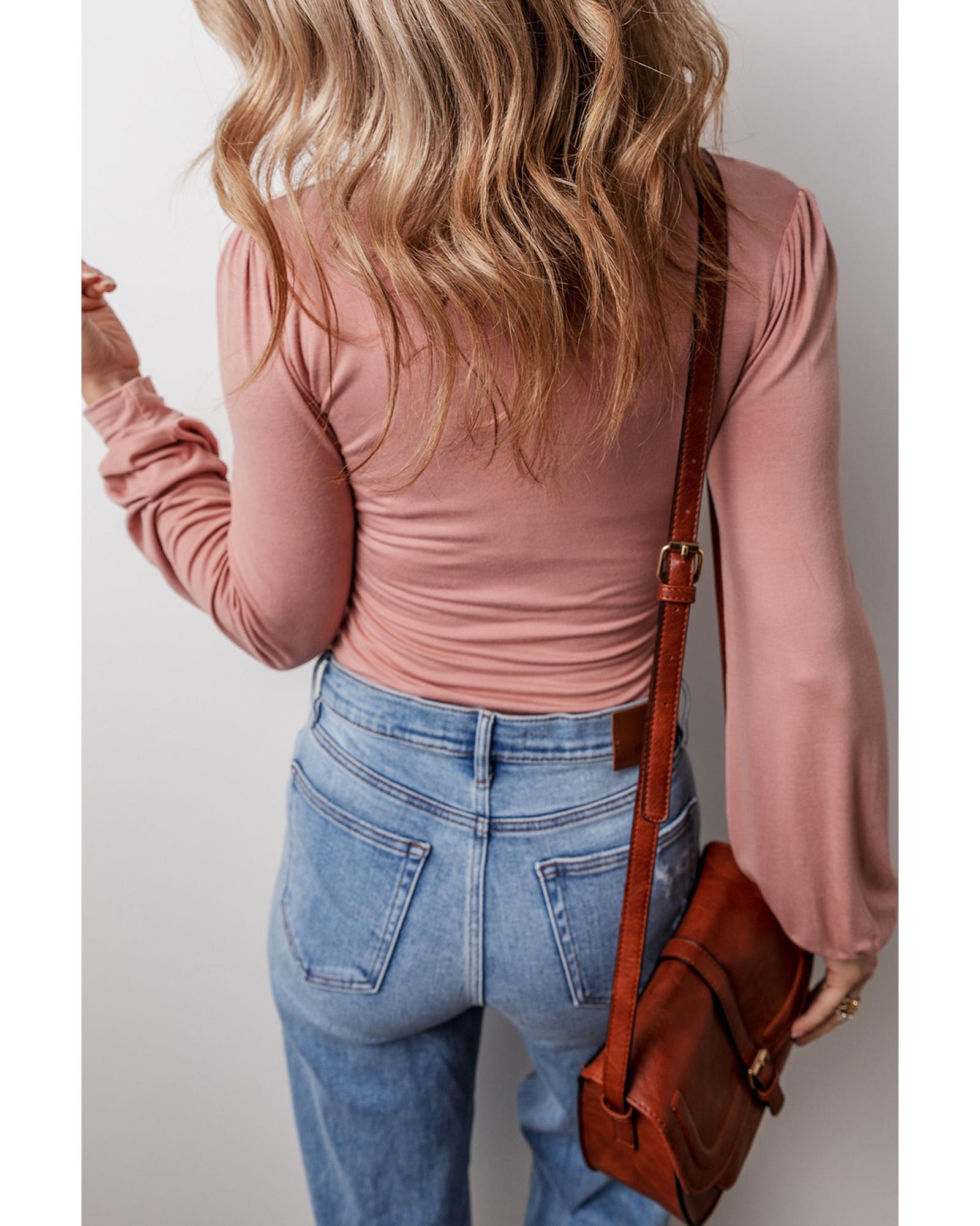 Fushia Plain V neck Long Sleeve Casual Bodysuit – L