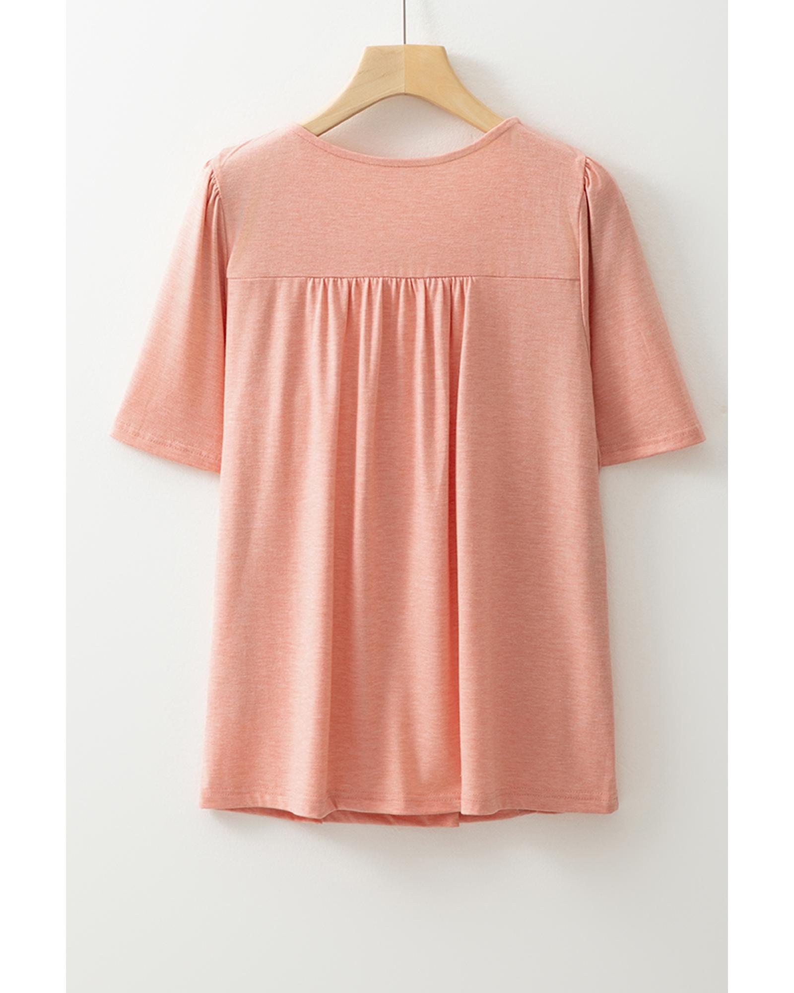 Fushia Smocked Front V Neck Pleated Babydoll Short Sleeve Top – XL