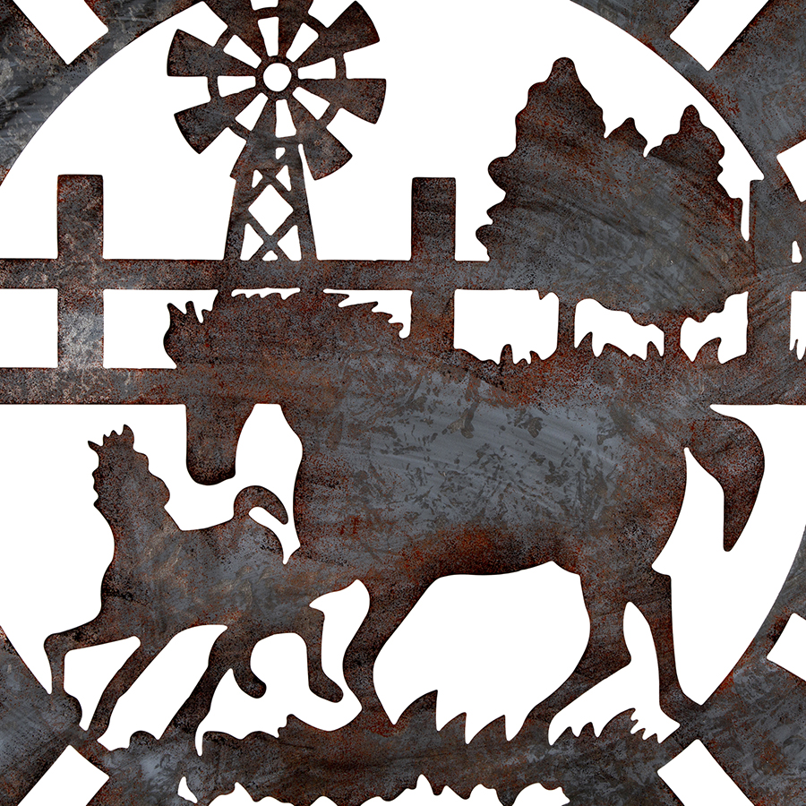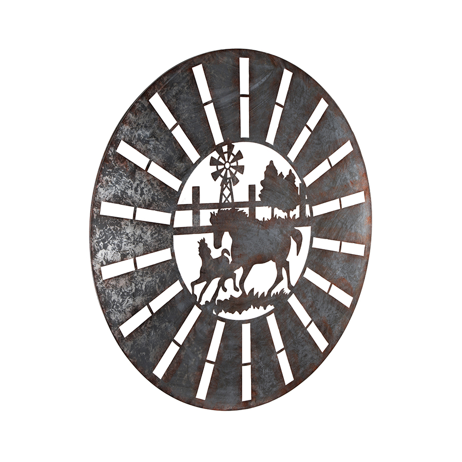 Galvanised w Rust Horses Round Laser Cut Wall Art 100cm