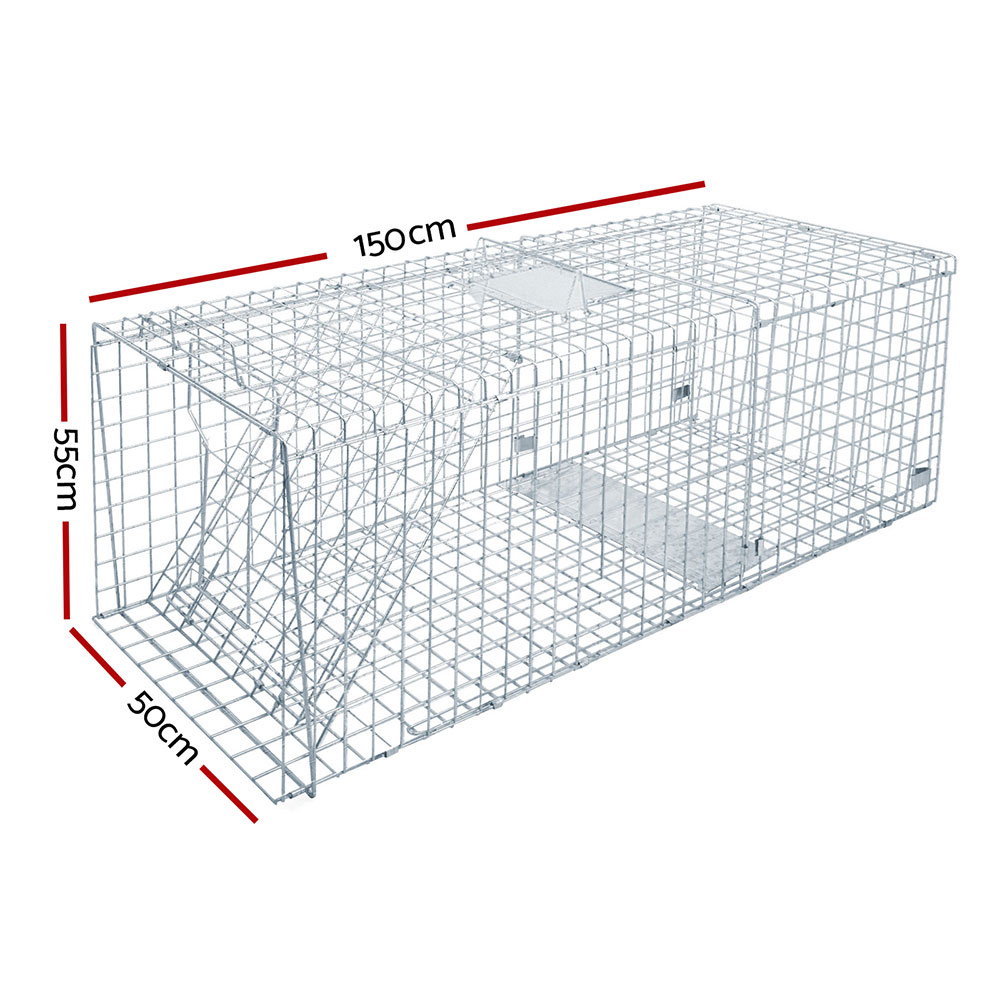 Made from quality rust resistant galvanised iron wire, this humane animal trap cage is built to last for years. Featuring spring loaded door trap with protected handle and an automatic locking system that is swift in operation, this cage is designed to ensure safety of both animals and users. Perfect for removing pest animals in backyard and capturing pest alive. It has a collapsible design and can be folded away quickly for easy storage and transportation.