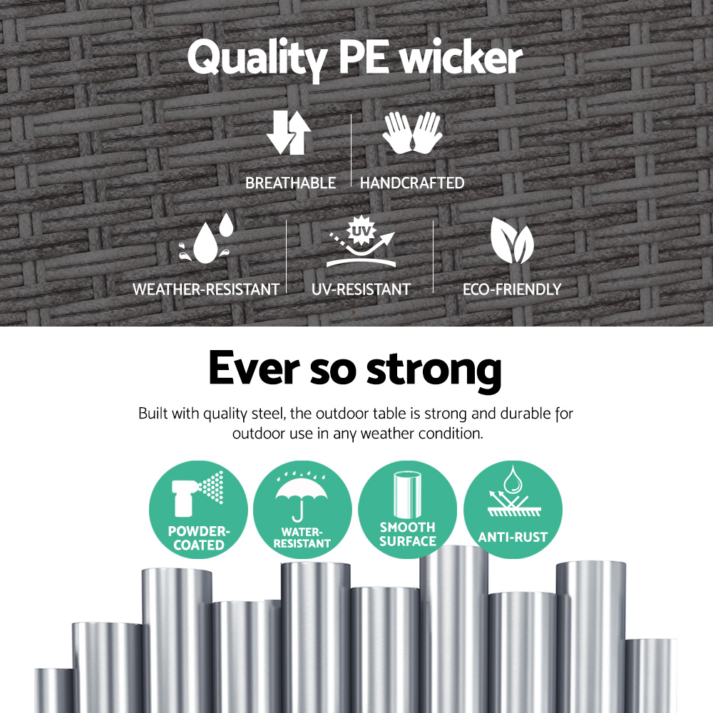 Gardeon Coffee Side Table Wicker Desk Rattan Outdoor Furniture Garden Grey